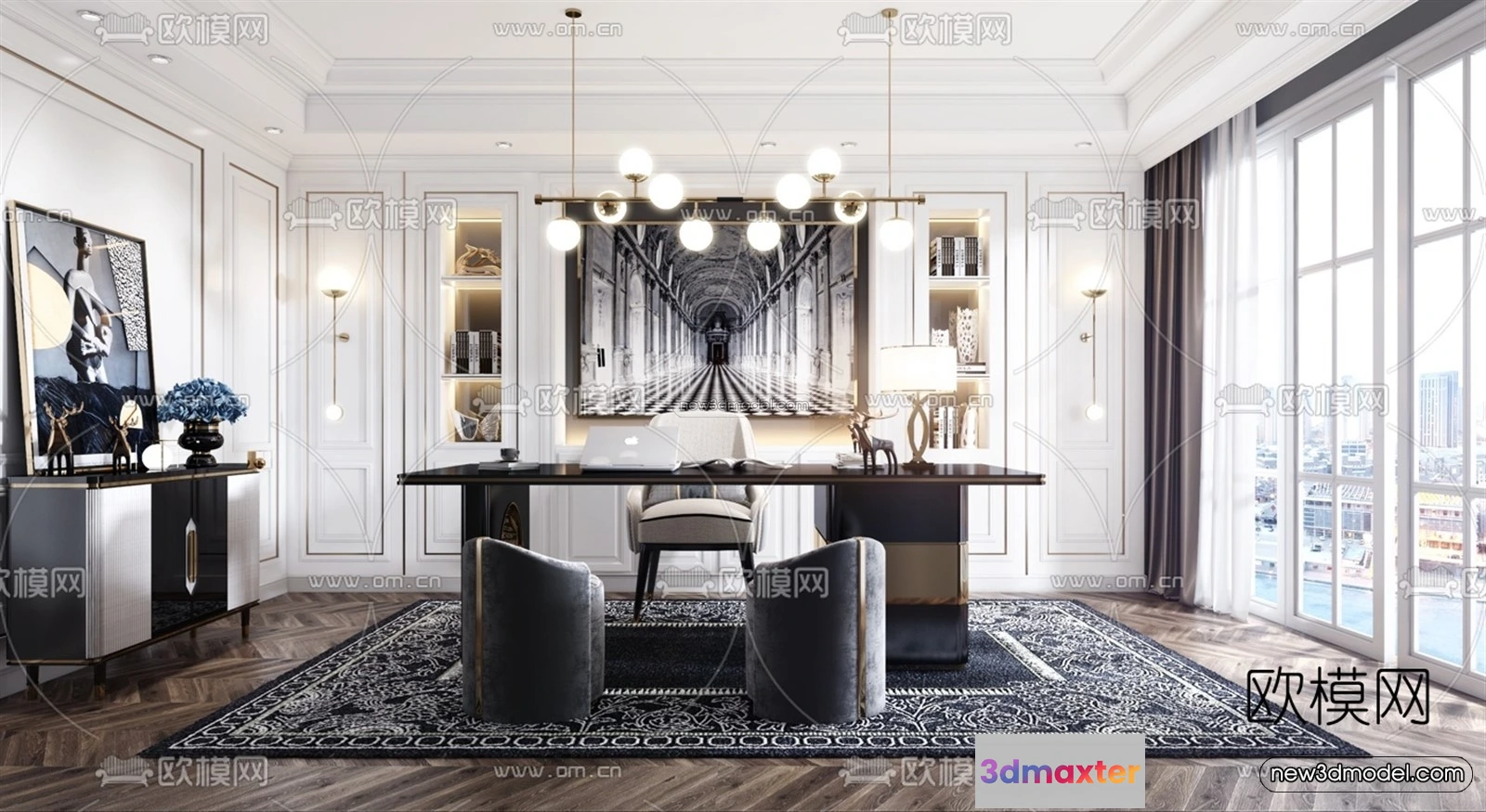 Europe Style Interior 3D Blocks – Study Room 3D Model – 338 – Office Home 3D Model – VRAY