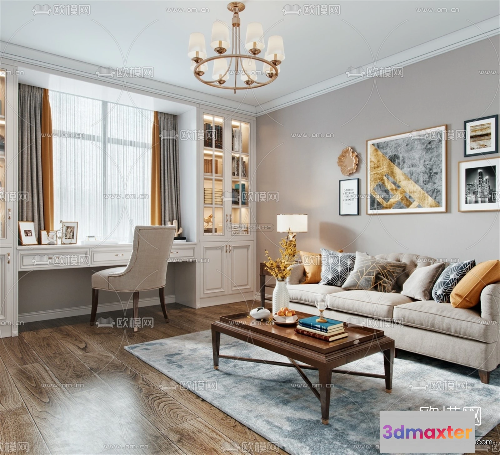 Europe Style Interior 3D Blocks – Study Room 3D Model – 342 – Office Home 3D Model – VRAY