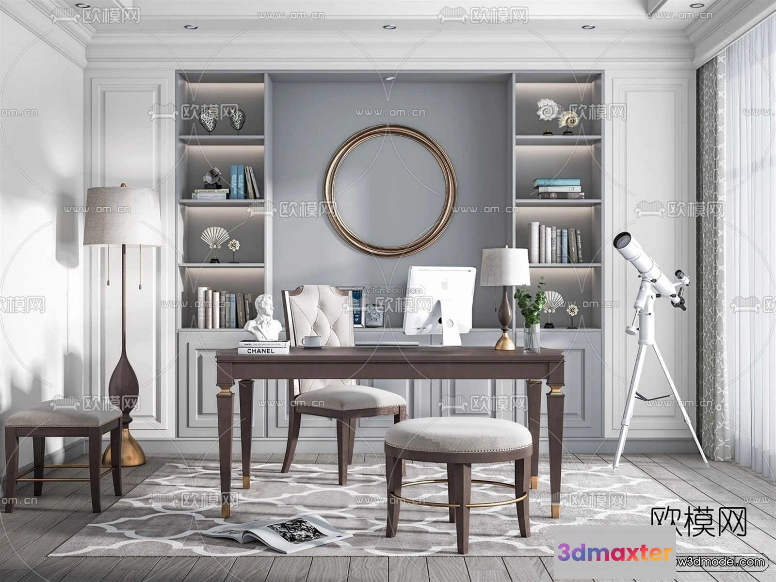 Europe Style Interior 3D Blocks – Study Room 3D Model – 343 – Office Home 3D Model – VRAY