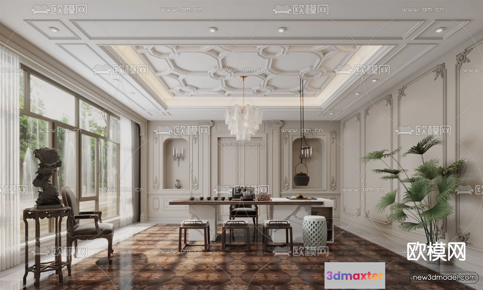 Europe Style Interior 3D Blocks – Study Room 3D Model – 350 – Office Home 3D Model – VRAY