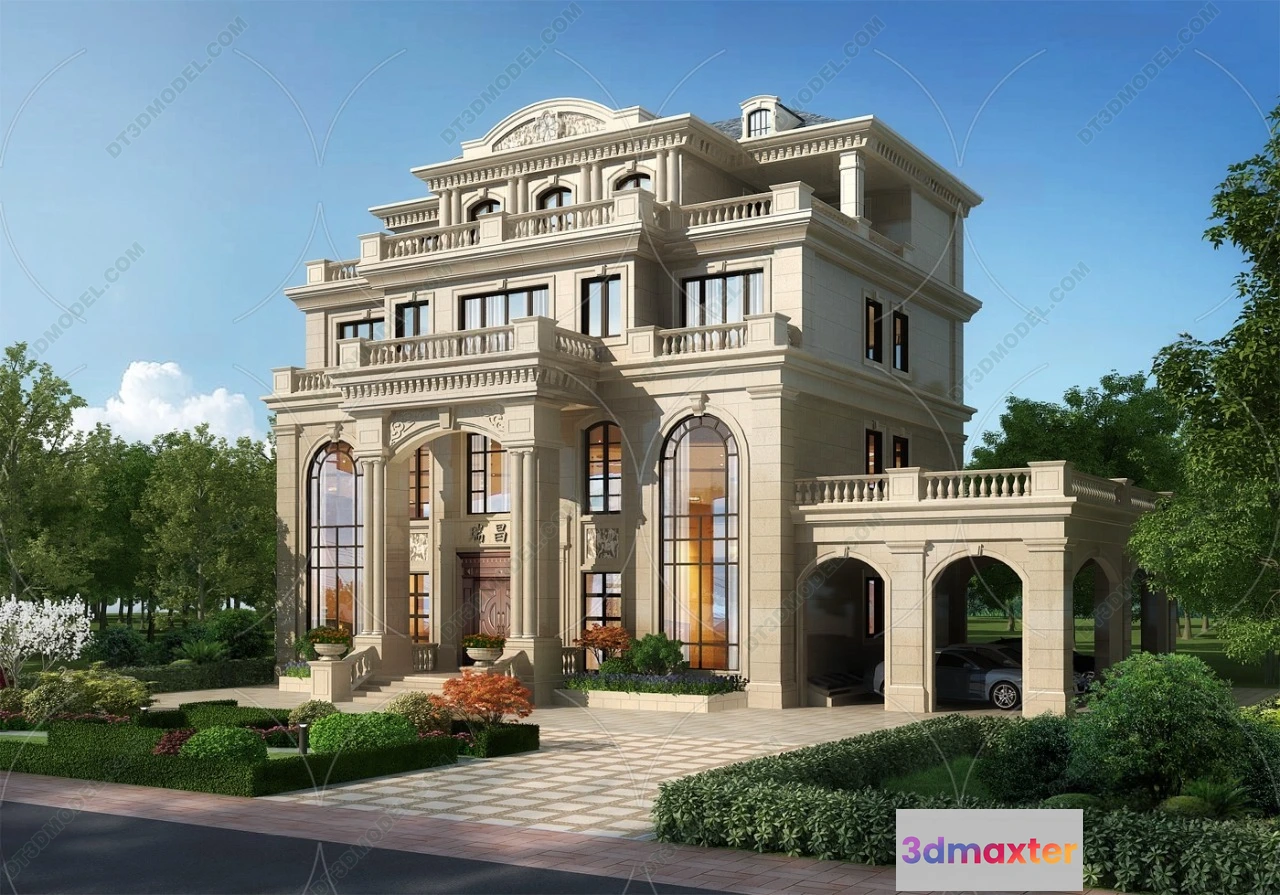 3D Models / 3D Scenes / Exterior / Villa / Europe Style Villa 3D Model – 3D Blocks – 017 3D Max