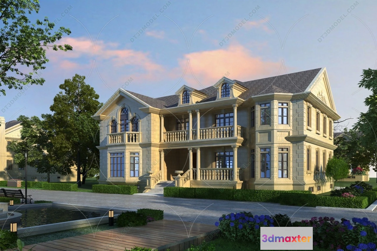 3D Models / 3D Scenes / Exterior / Villa / Europe Style Villa 3D Model – 3D Blocks – 022 3D Max