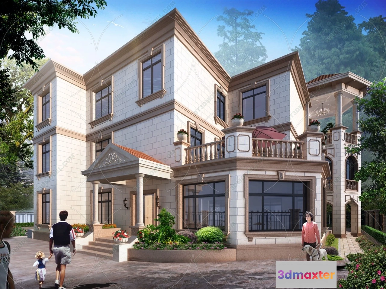 Europe Style Villa 3D Model – 3D Blocks – 030 – Villa 3D Model – VRAY