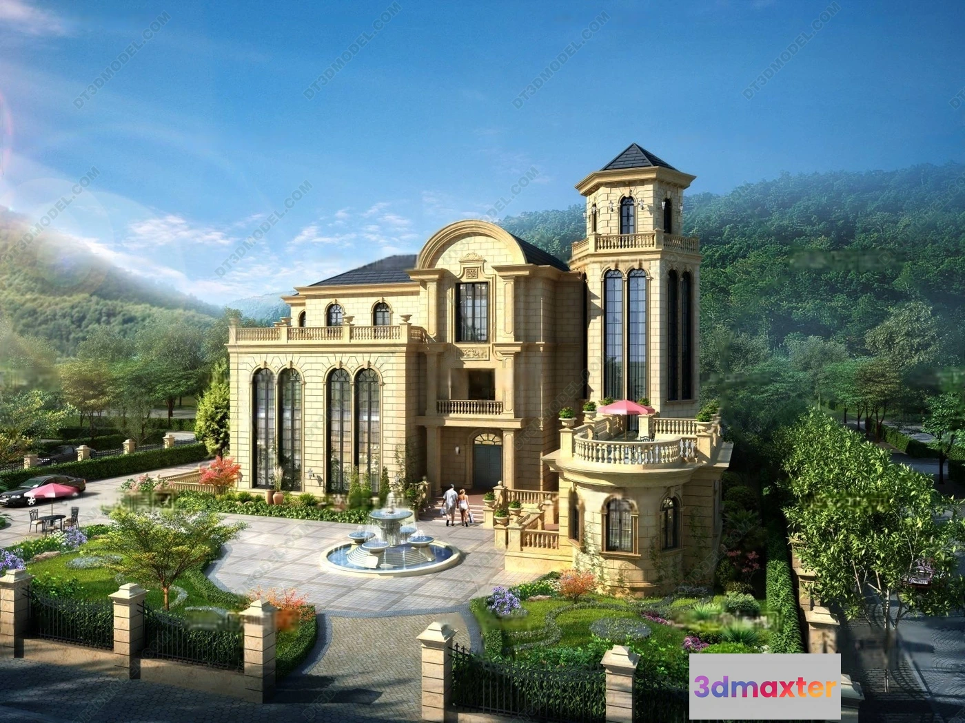 Europe Style Villa 3D Model – 3D Blocks – 035 – Villa 3D Model – VRAY