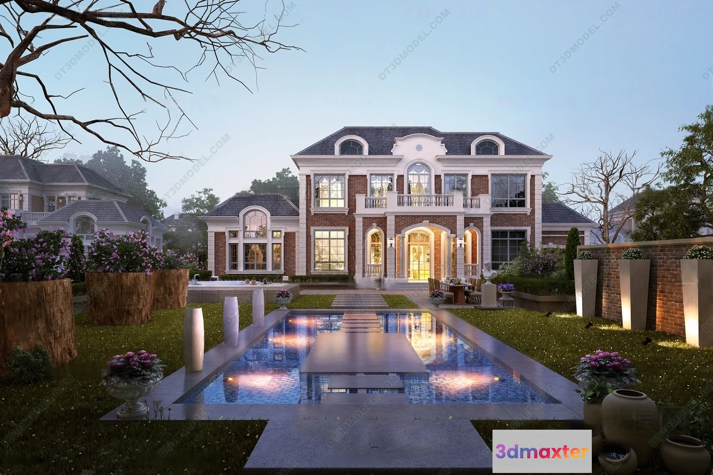 Europe Style Villa 3D Model – 3D Blocks – 039 – Villa 3D Model – VRAY