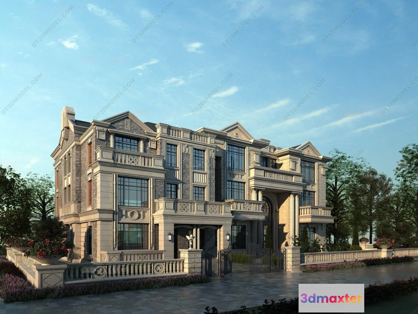 3D Models / 3D Scenes / Exterior / Villa / Europe Style Villa 3D Model – 3D Blocks – 042 3D Max