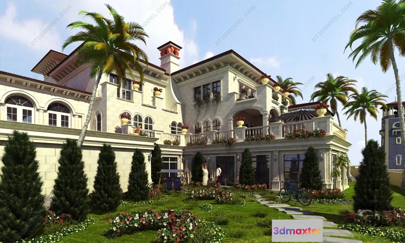 3D Models / 3D Scenes / Exterior / Villa / Europe Style Villa 3D Model – 3D Blocks – 054 3D Max