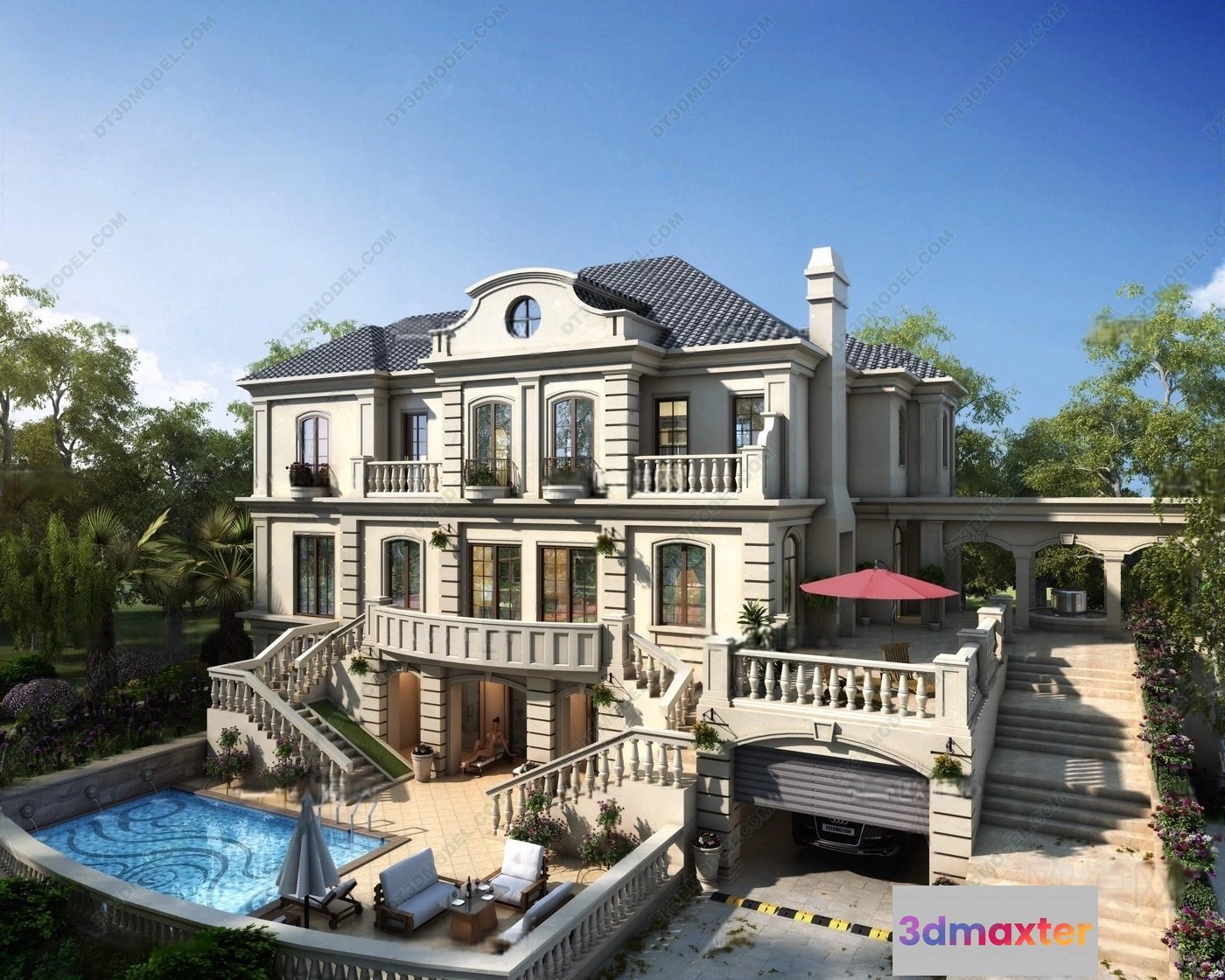 Europe Style Villa 3D Model – 3D Blocks – 060 – Villa 3D Model – VRAY