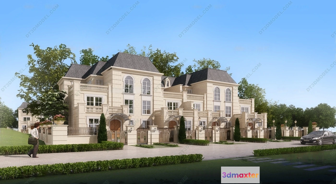 3D Models / 3D Scenes / Exterior / Villa / Europe Style Villa 3D Model – 3D Blocks – 077 3D Max