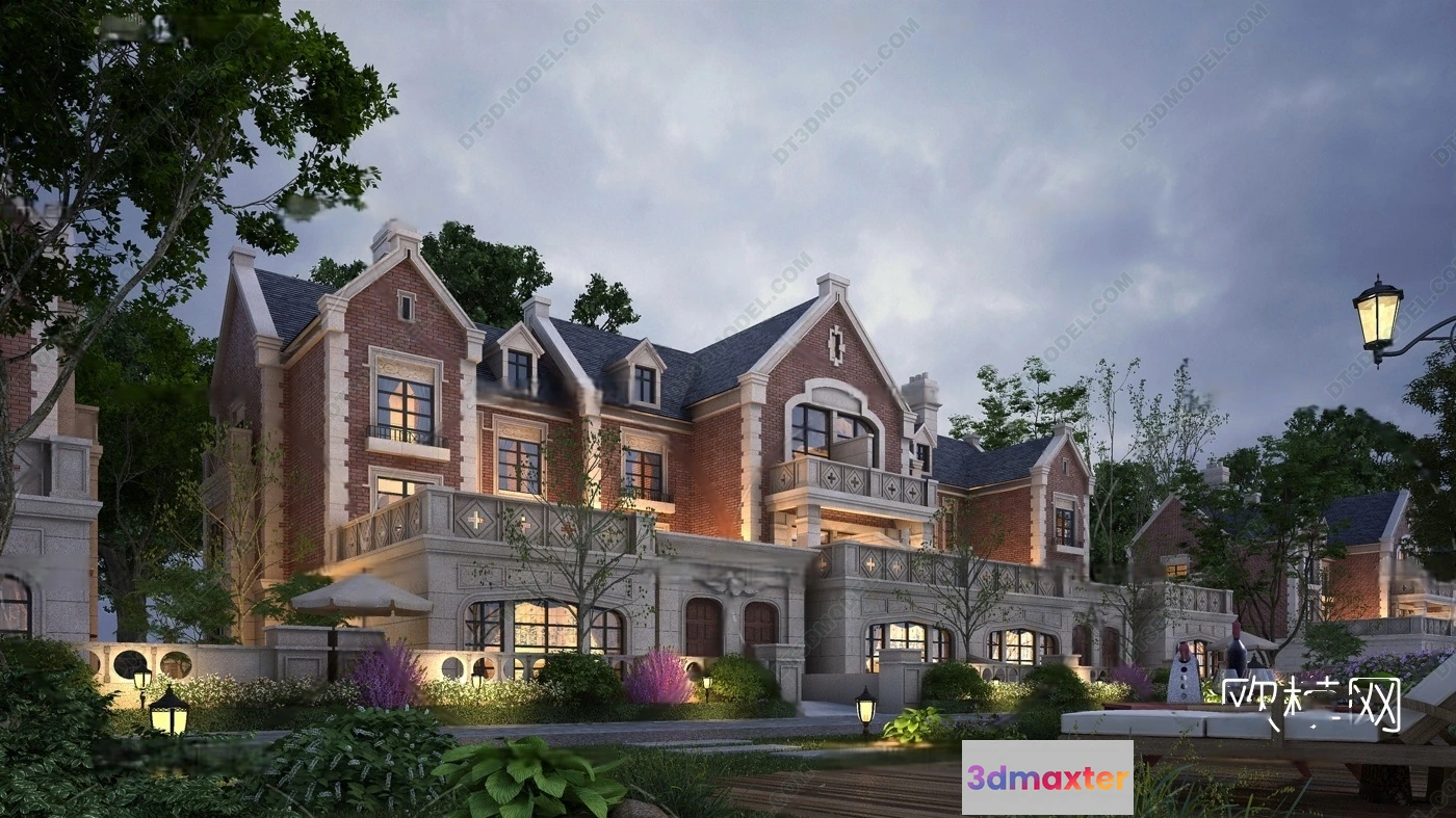 Europe Style Villa 3D Model – 3D Blocks – 079 – Villa 3D Model – VRAY