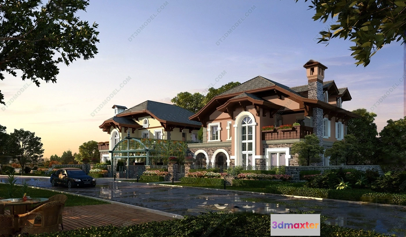 Europe Style Villa 3D Model – 3D Blocks – 089 – Villa 3D Model – VRAY