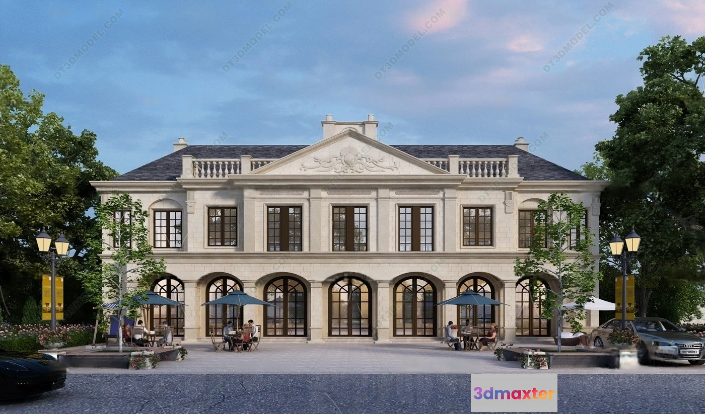 Europe Style Villa 3D Model – 3D Blocks – 093 – Villa 3D Model – VRAY