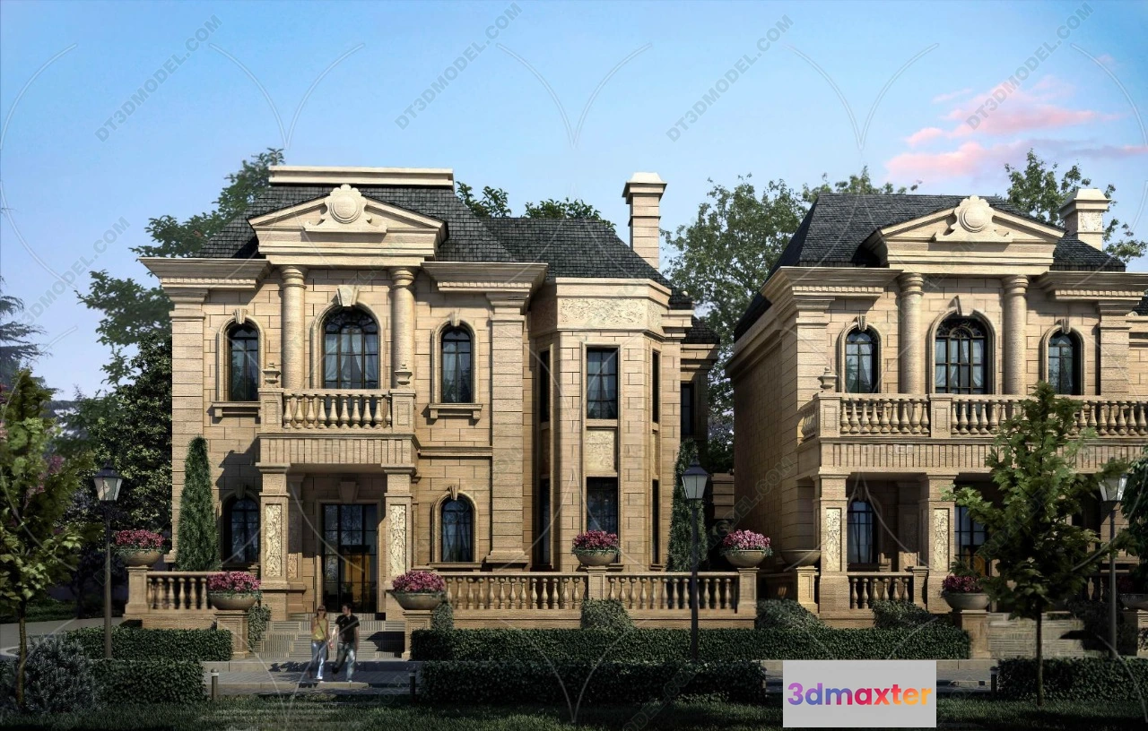 3D Models / 3D Scenes / Exterior / Villa / Europe Style Villa 3D Model – 3D Blocks – 096 3D Max