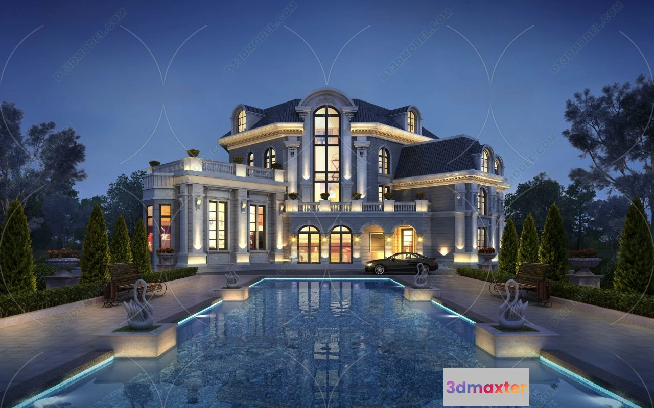 3D Models / 3D Scenes / Exterior / Villa / Europe Style Villa 3D Model – 3D Blocks – 100 3D Max