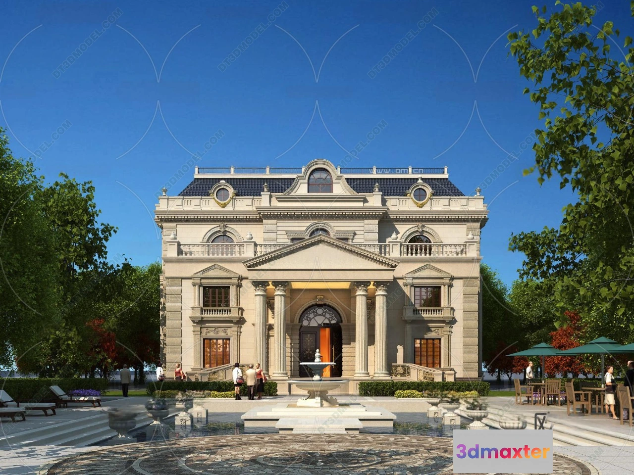 3D Models / 3D Scenes / Exterior / Villa / Europe Style Villa 3D Model – 3D Blocks – 111 3D Max