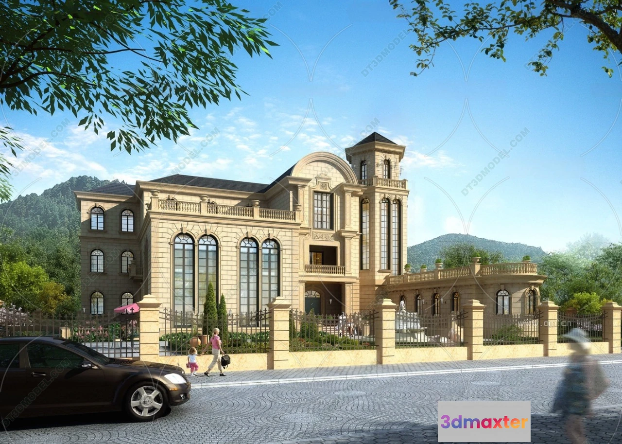 3D Models / 3D Scenes / Exterior / Villa / Europe Style Villa 3D Model – 3D Blocks – 124 3D Max