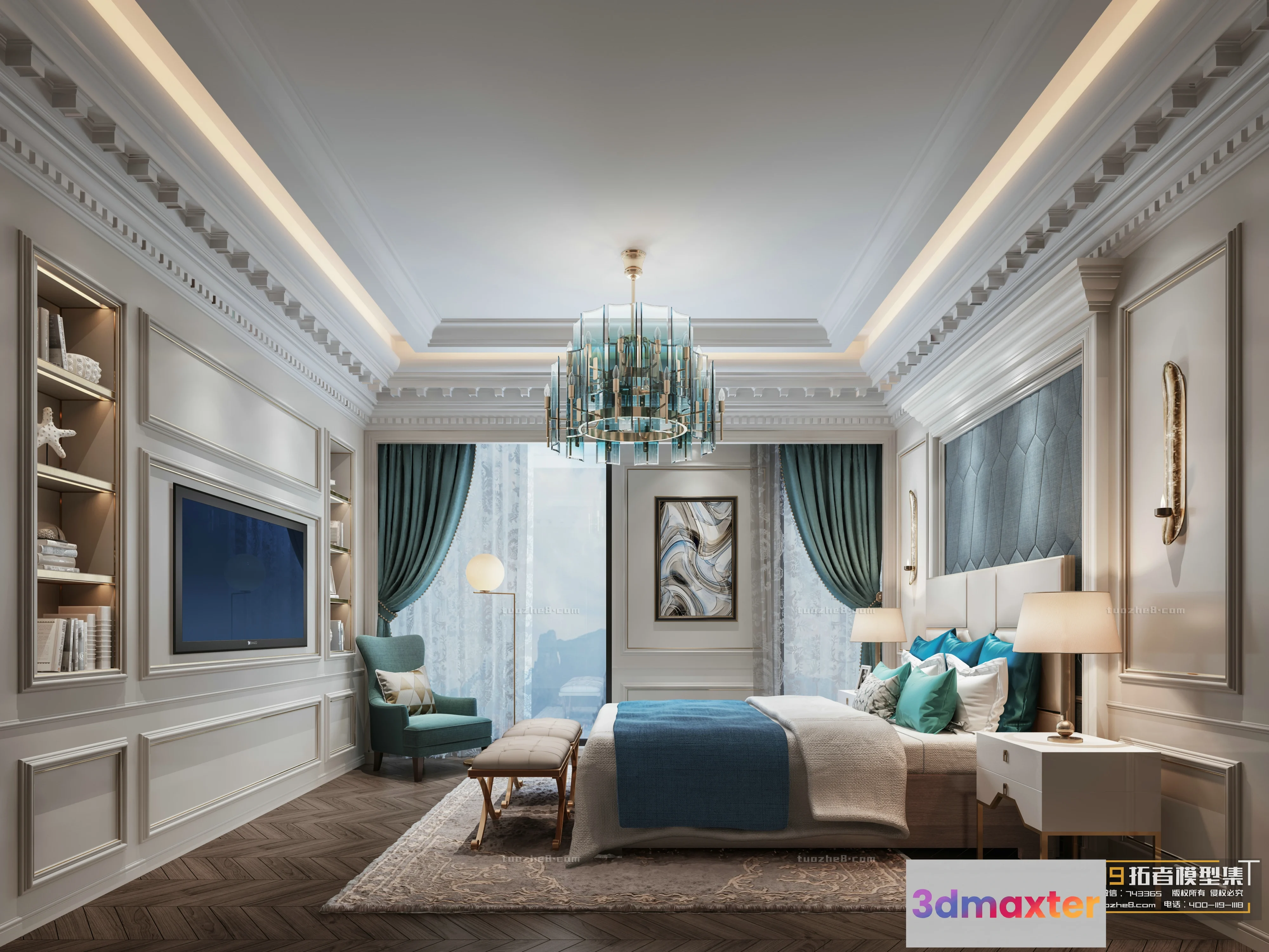 3D Models / 3D Scenes / Interior / Bedroom / Extension Interior – BEDROOM – AMERICAN STYLES – 008