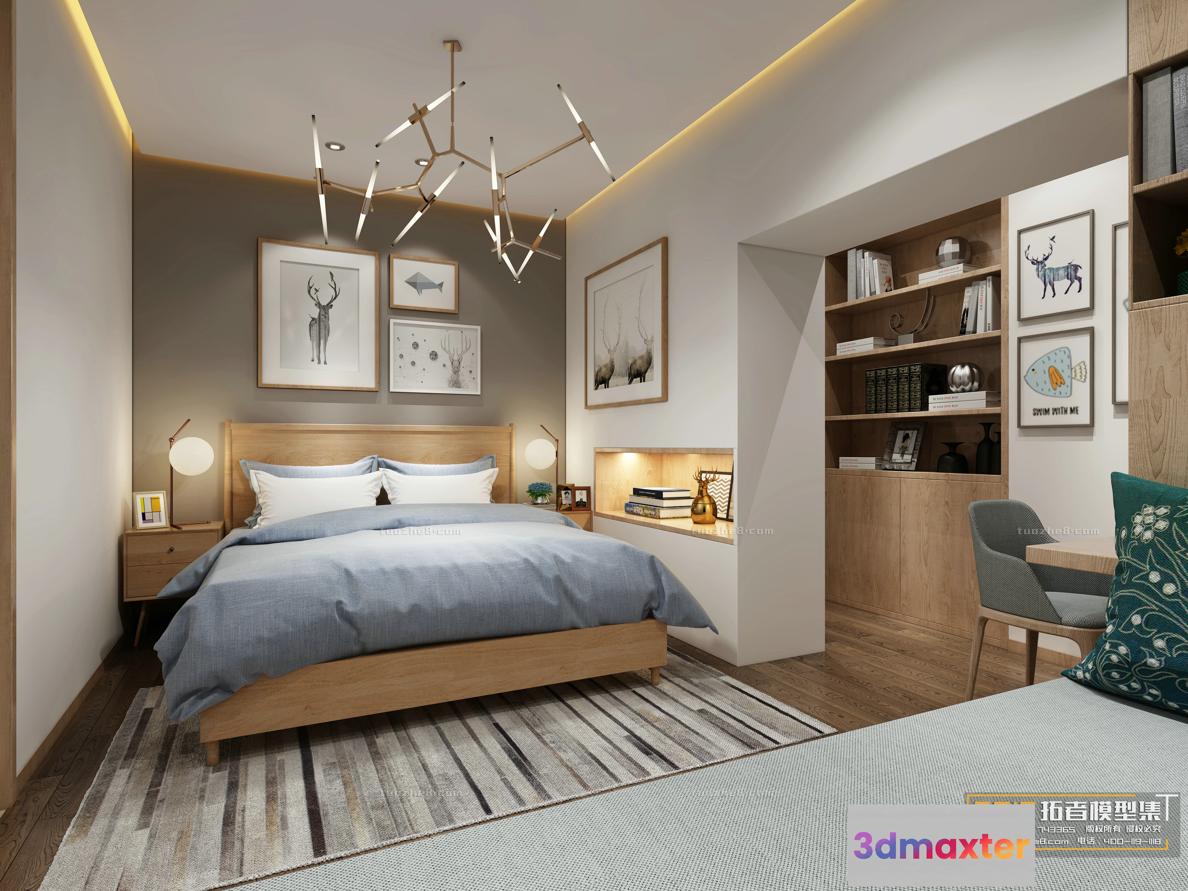 3D Models / 3D Scenes / Interior / Bedroom / Extension Interior – BEDROOM – NORDIC STYLES – 008