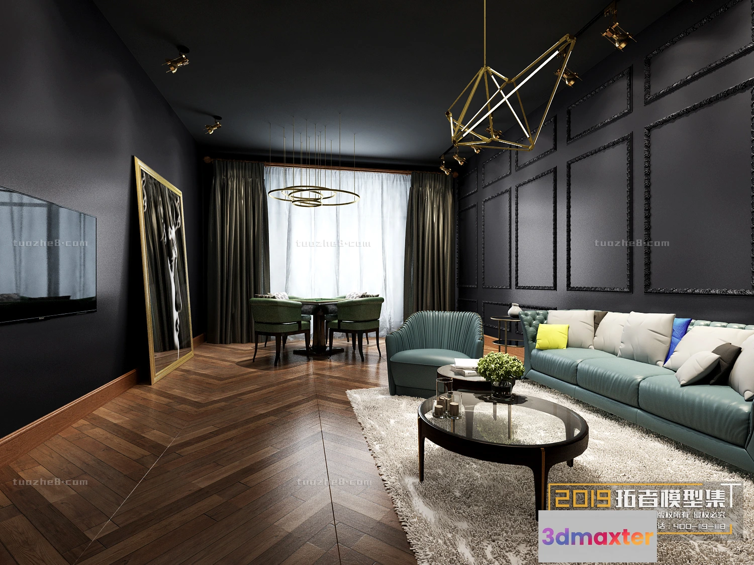3D Models / 3D Scenes / Interior / Living Room / Extension Interior – LINGVING ROOM – AMERICAN STYLES – 005