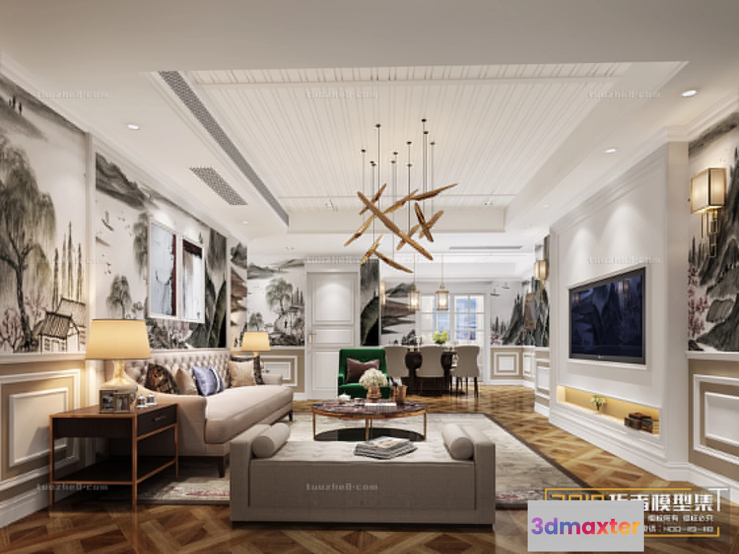 3D Models / 3D Scenes / Interior / Living Room / Extension Interior – LINGVING ROOM – AMERICAN STYLES – 017