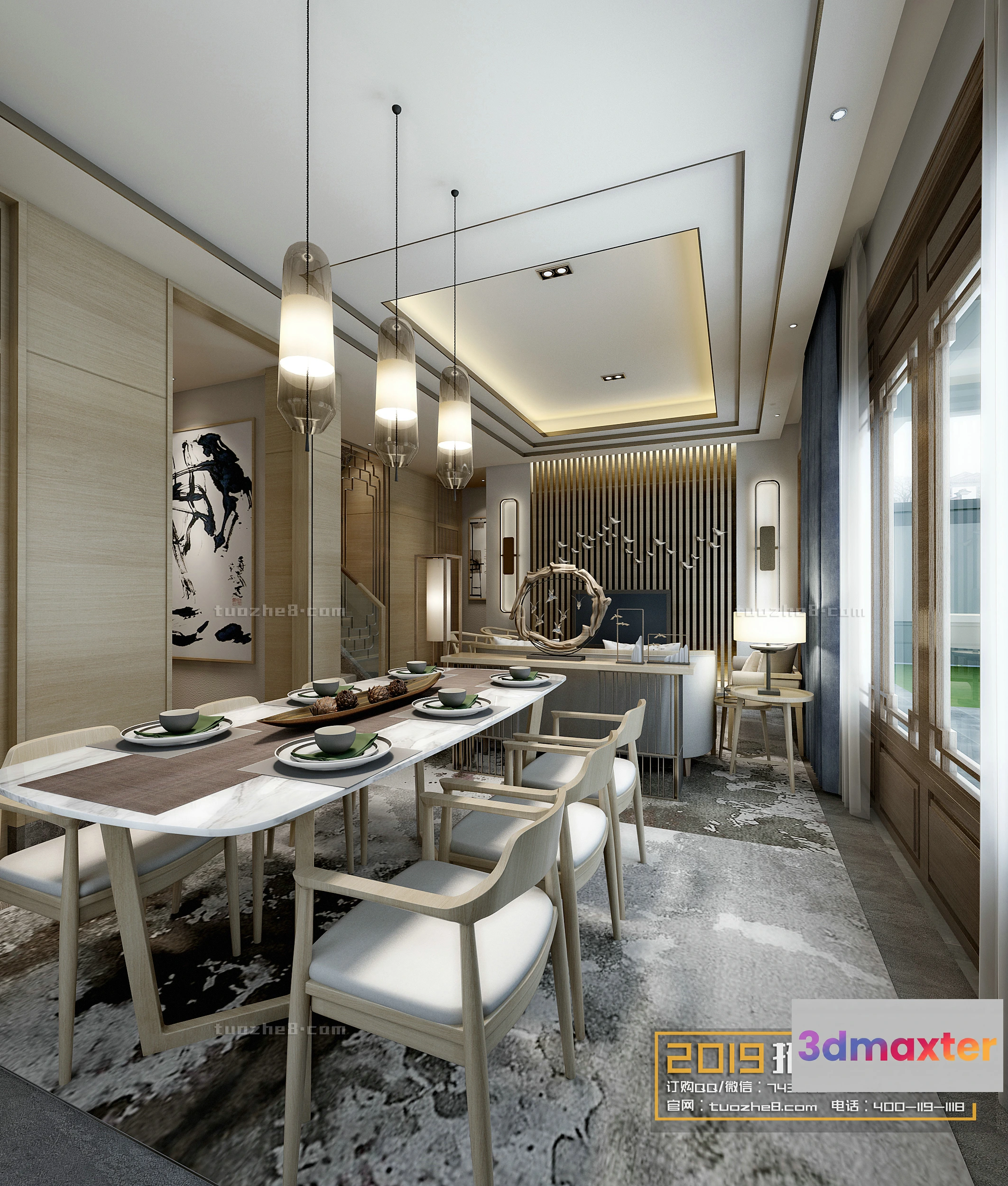 3D Models / 3D Scenes / Interior / Living Room / Extension Interior – LINGVING ROOM – CHINESE STYLES – 008