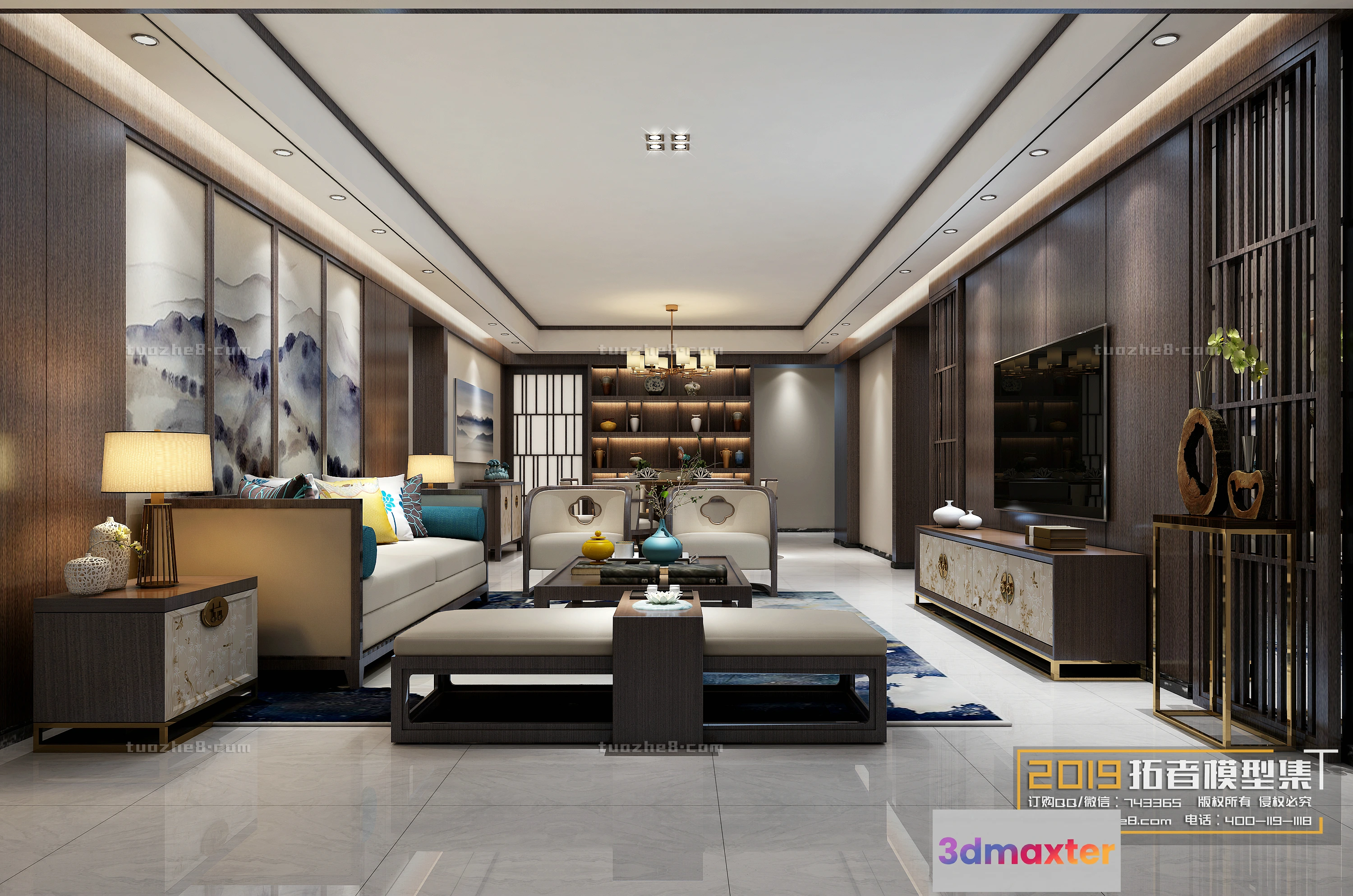 3D Models / 3D Scenes / Interior / Living Room / Extension Interior – LINGVING ROOM – CHINESE STYLES – 011