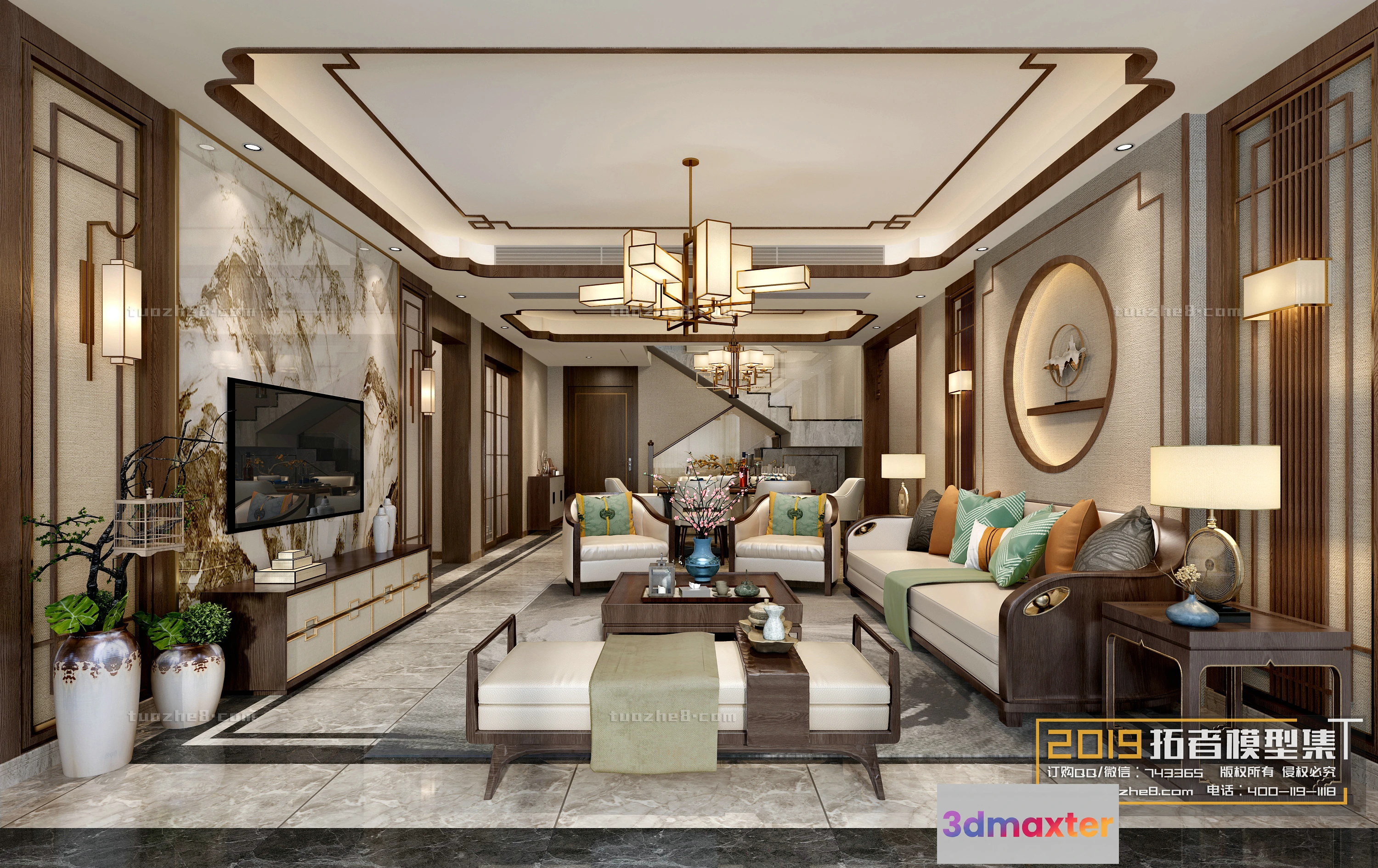 3D Models / 3D Scenes / Interior / Living Room / Extension Interior – LINGVING ROOM – CHINESE STYLES – 030