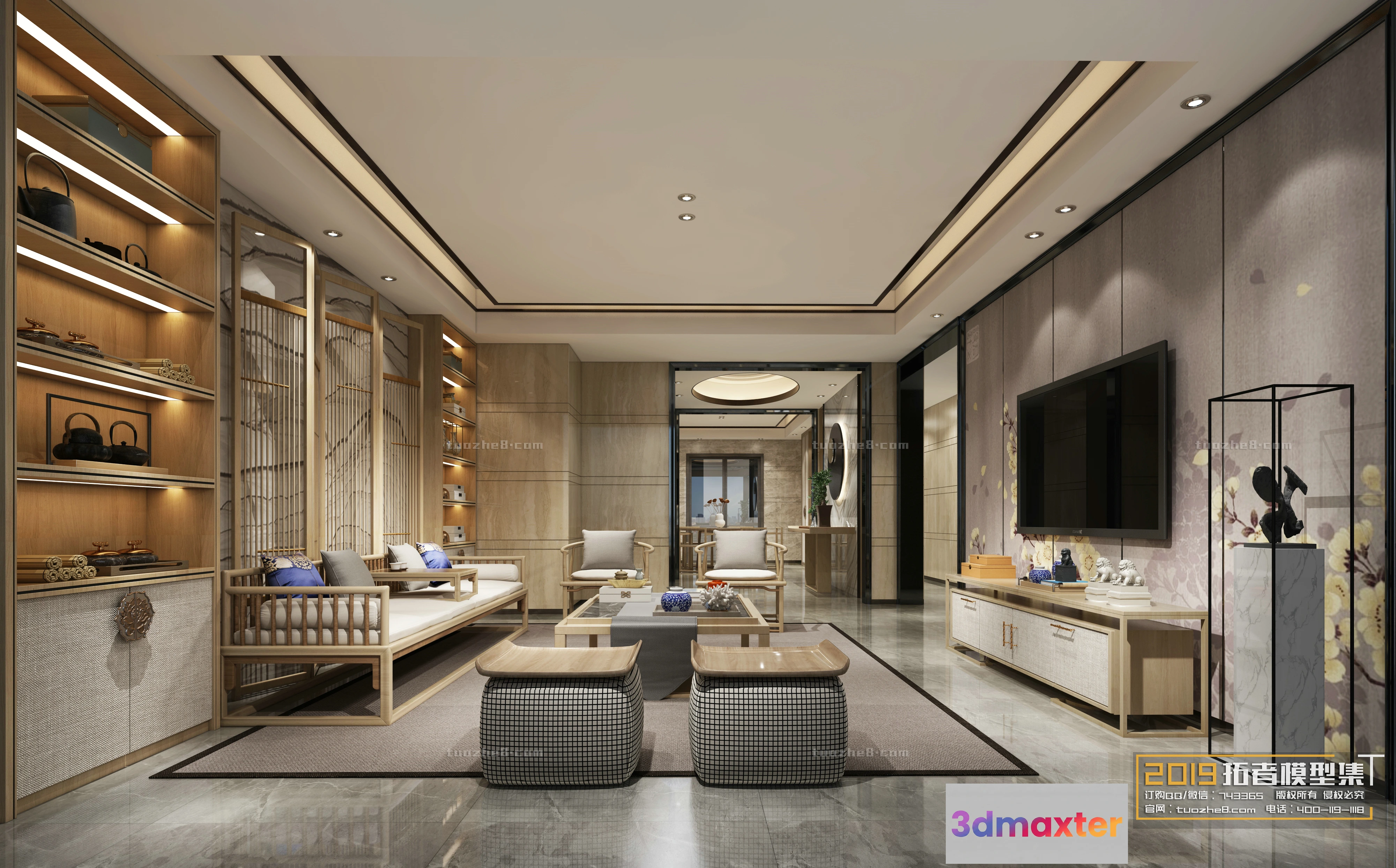 3D Models / 3D Scenes / Interior / Living Room / Extension Interior – LINGVING ROOM – CHINESE STYLES – 042
