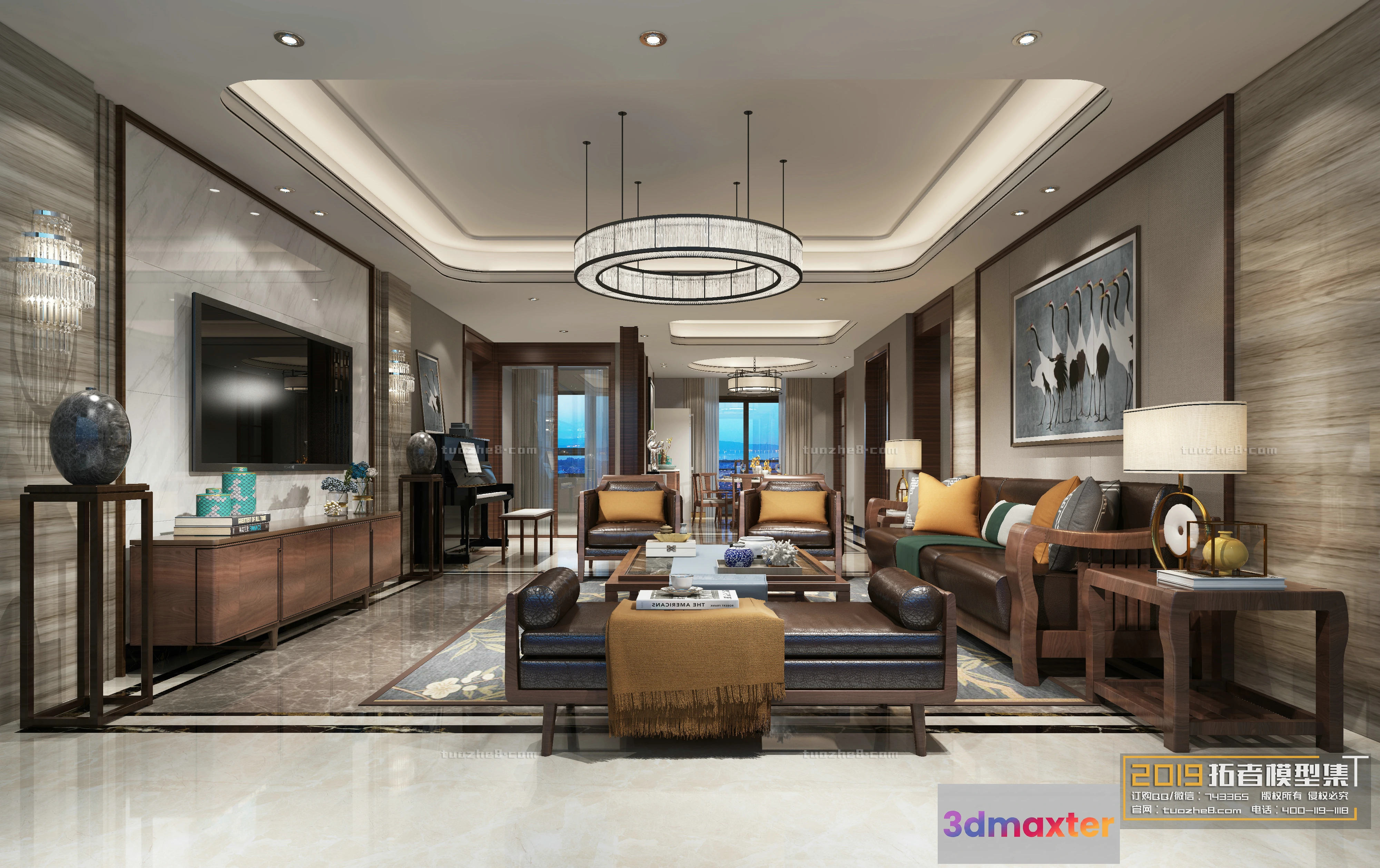 3D Models / 3D Scenes / Interior / Living Room / Extension Interior – LINGVING ROOM – CHINESE STYLES – 054