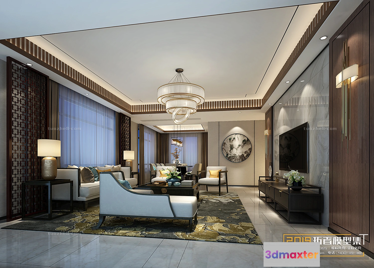 3D Models / 3D Scenes / Interior / Living Room / Extension Interior – LINGVING ROOM – CHINESE STYLES – 074