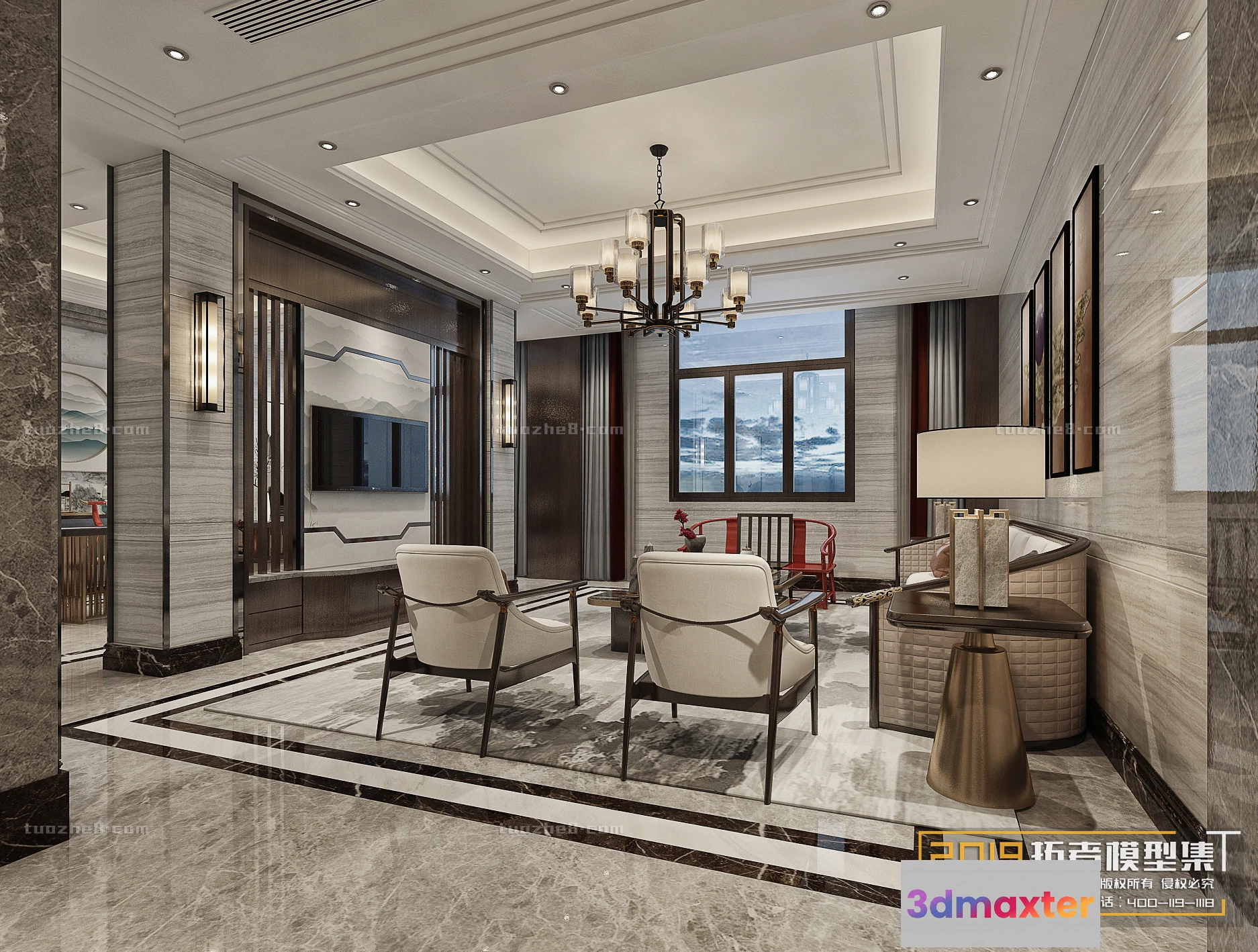 3D Models / 3D Scenes / Interior / Living Room / Extension Interior – LINGVING ROOM – CHINESE STYLES – 083