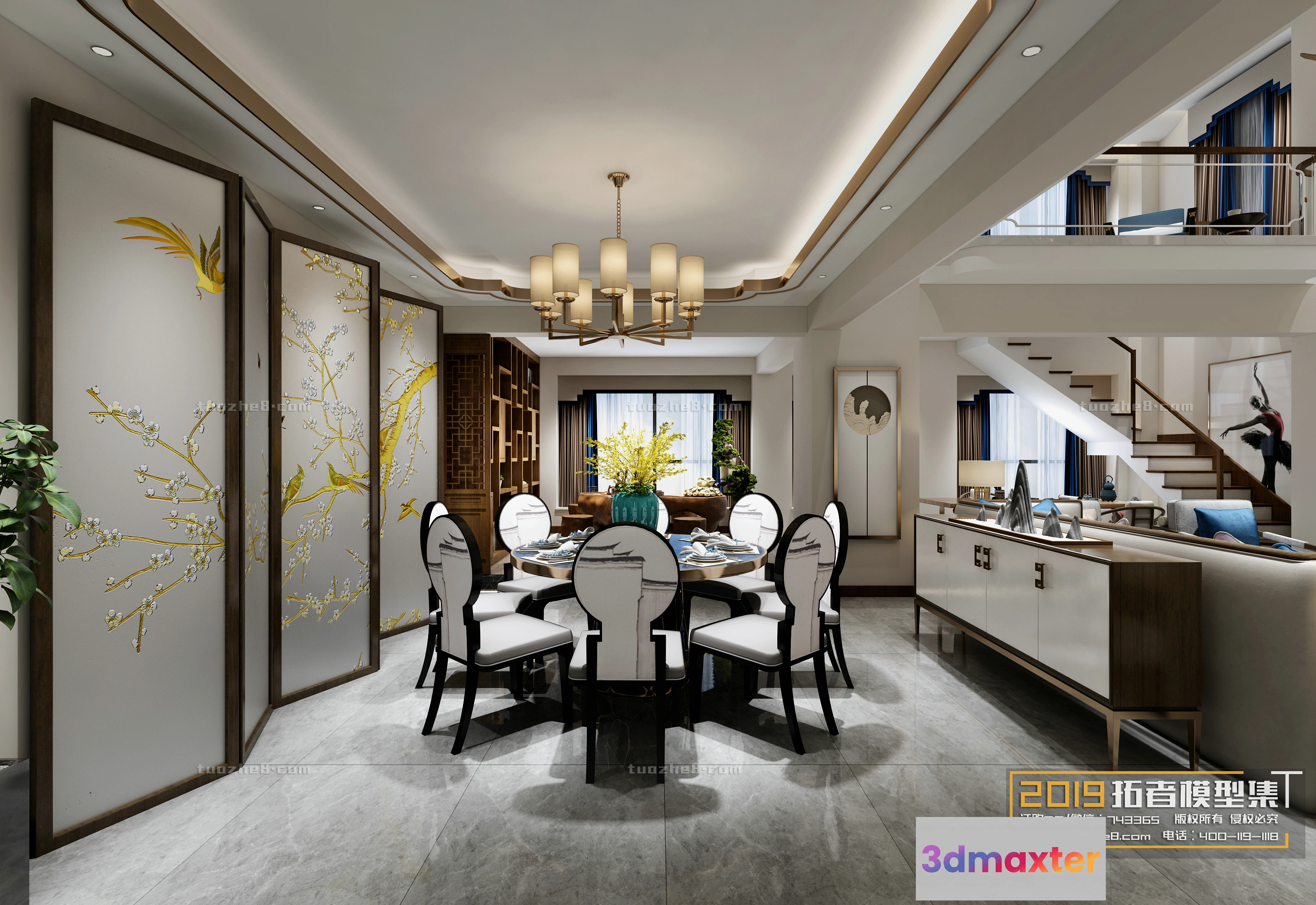 3D Models / 3D Scenes / Interior / Living Room / Extension Interior – LINGVING ROOM – CHINESE STYLES – 091