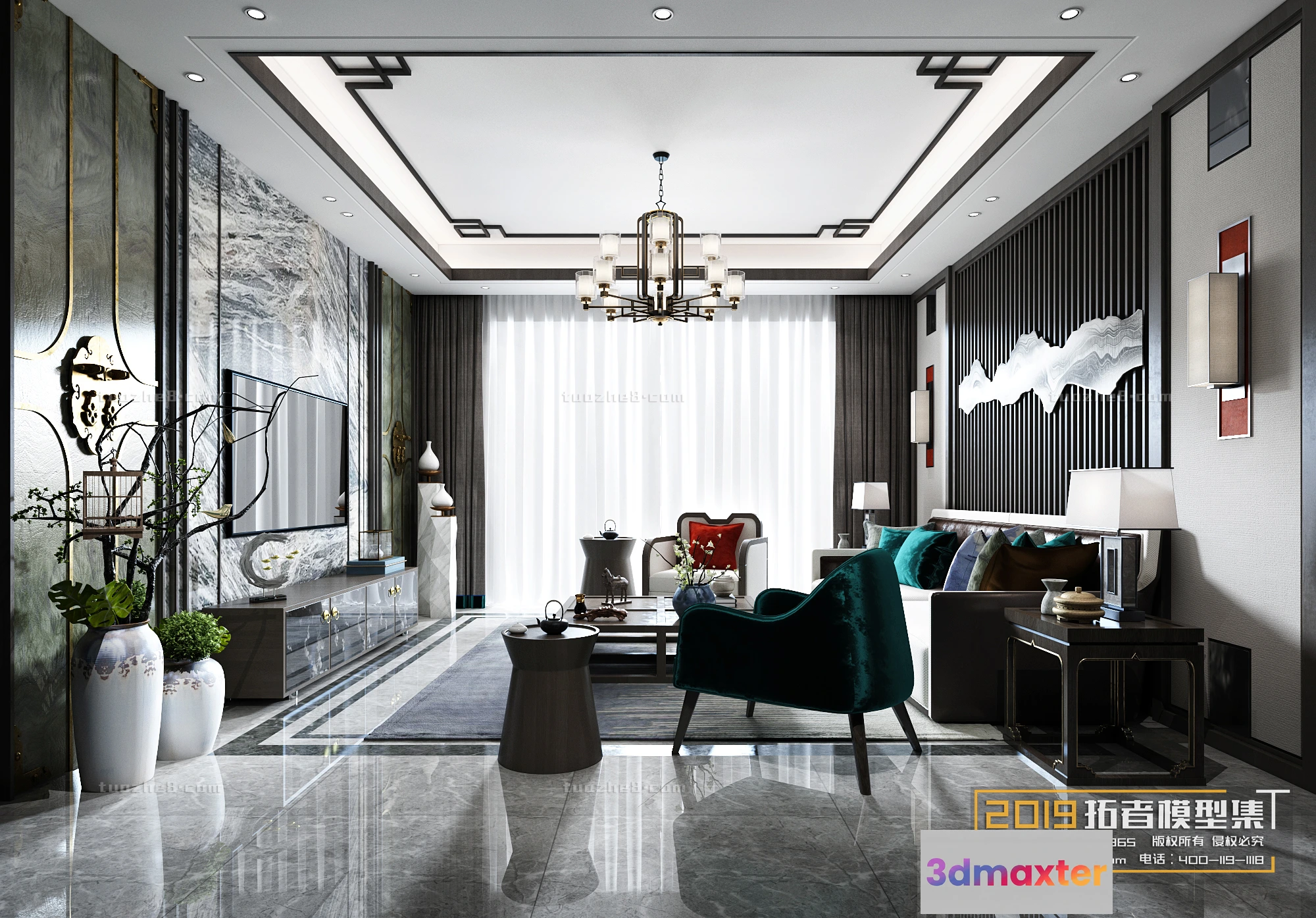 3D Models / 3D Scenes / Interior / Living Room / Extension Interior – LINGVING ROOM – CHINESE STYLES – 094