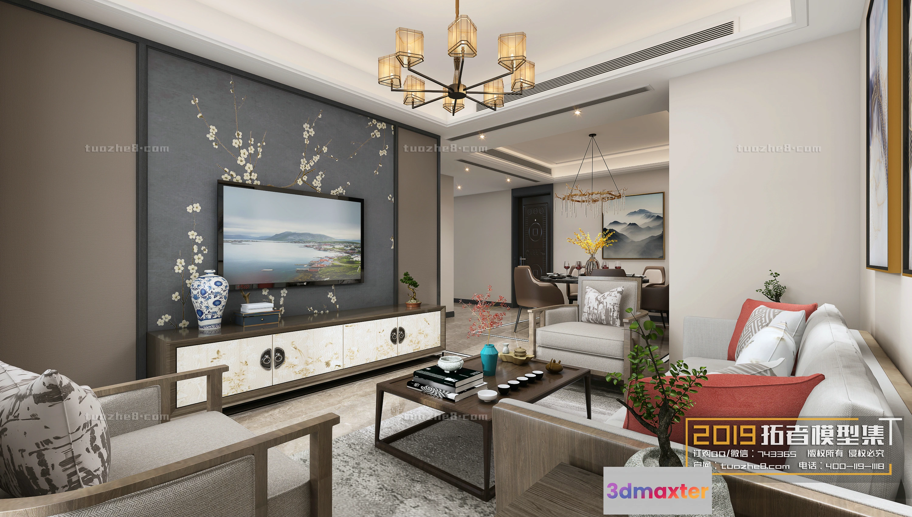 3D Models / 3D Scenes / Interior / Living Room / Extension Interior – LINGVING ROOM – CHINESE STYLES – 096