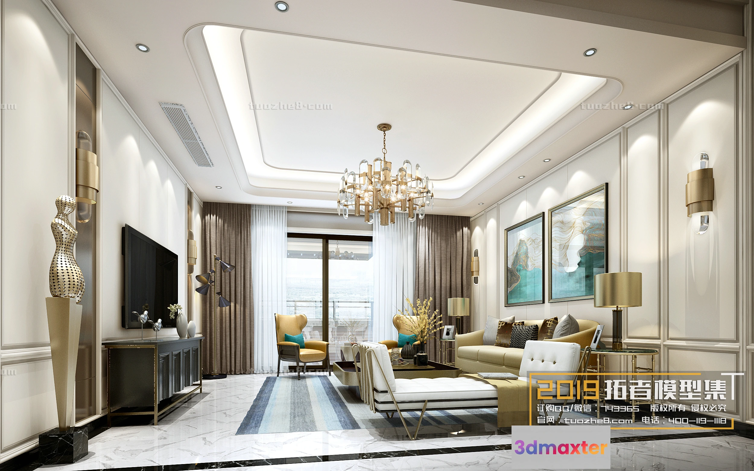 3D Models / 3D Scenes / Interior / Living Room / Extension Interior – LINGVING ROOM – EUROPEAN STYLES – 009