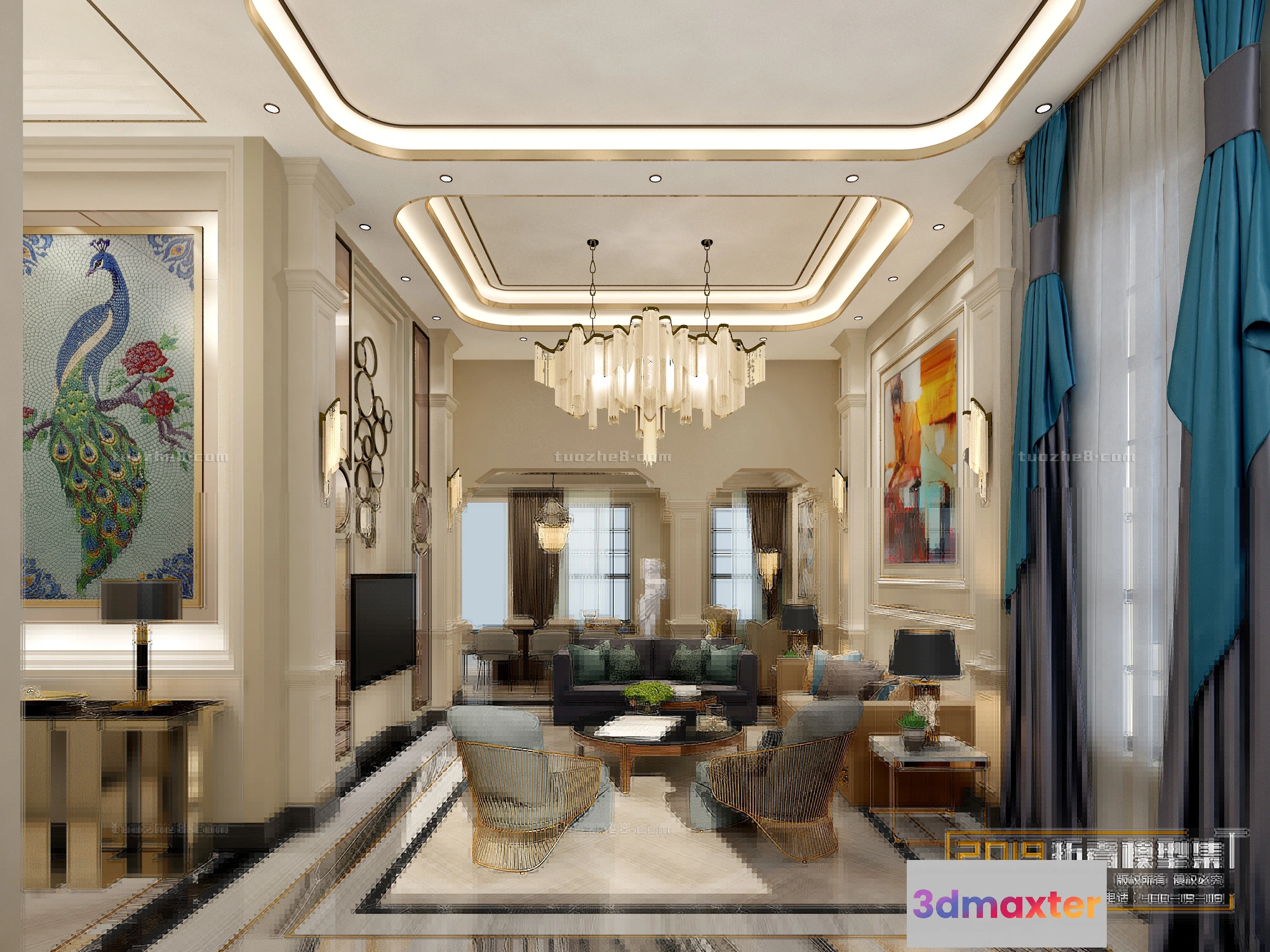 3D Models / 3D Scenes / Interior / Living Room / Extension Interior – LINGVING ROOM – EUROPEAN STYLES – 015