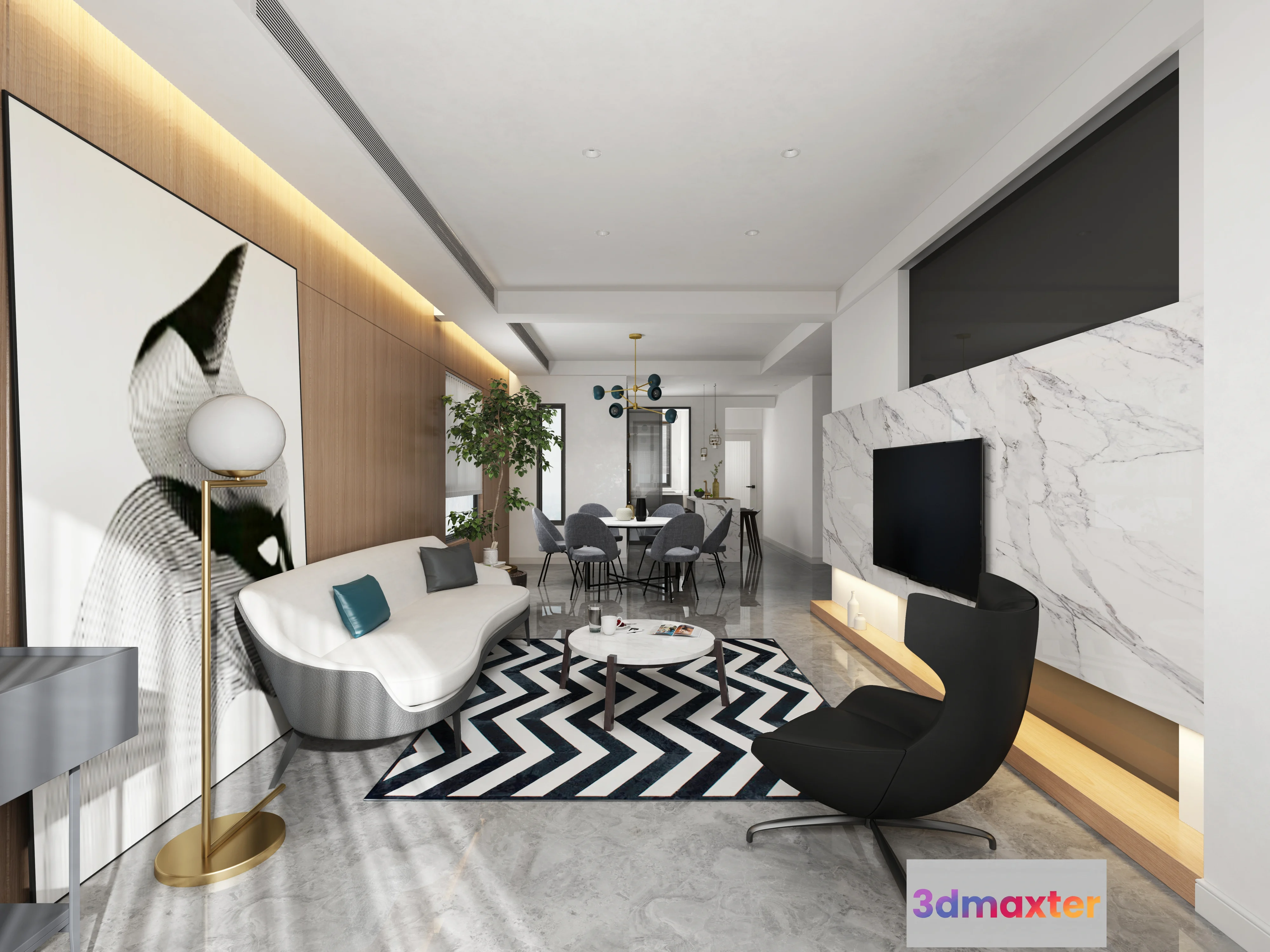 3D Models / 3D Scenes / Interior / Living Room / Extension Interior – LINGVING ROOM – MODERN STYLES – 100