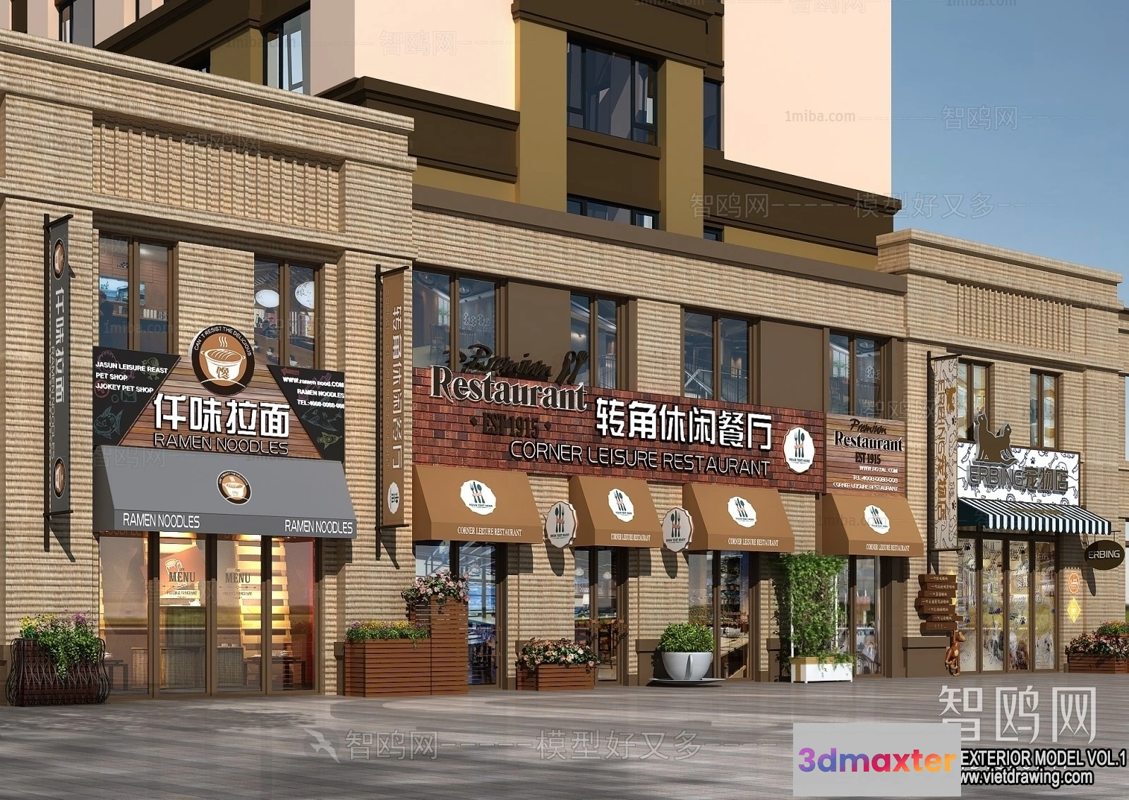 3D Models / 3D Scenes / Exterior / Exterior 3D Collection – Shop – Fastfood – Retails – 3D Models – 081 3D Max