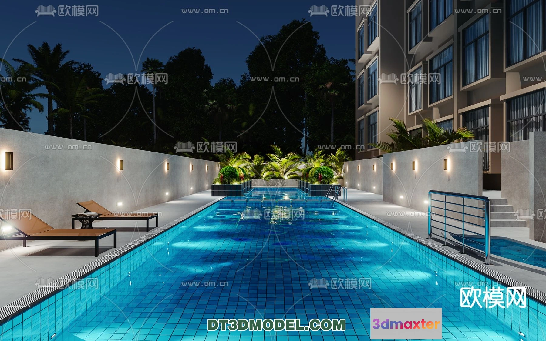 3D Models / 3D Scenes / Exterior / EXTERIOR – POOL – VRAY / CORONA – 3D MODEL – 1006