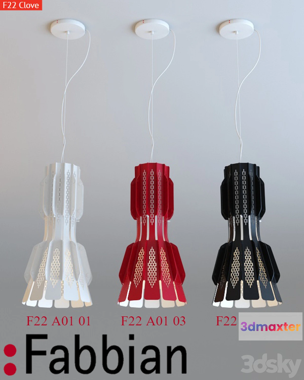 Fabbian lighting collection: F22 Clove product name: F22 A01 01 (03.21)Dimensions: 220h220h450 (h)Colors: white red blackPolys: 53406