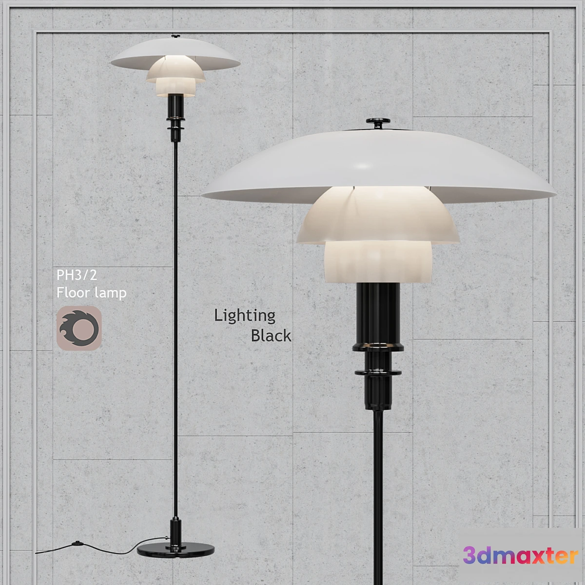 Formats: 3Ds Max 2013 OBJ https://www.2modern.com/products/ph-3-2-floor-lamp The floor lamp is presented in black metal with a white canopy. The light source is present. The filament bulb model is made in one mesh. Multi-Sub materials.