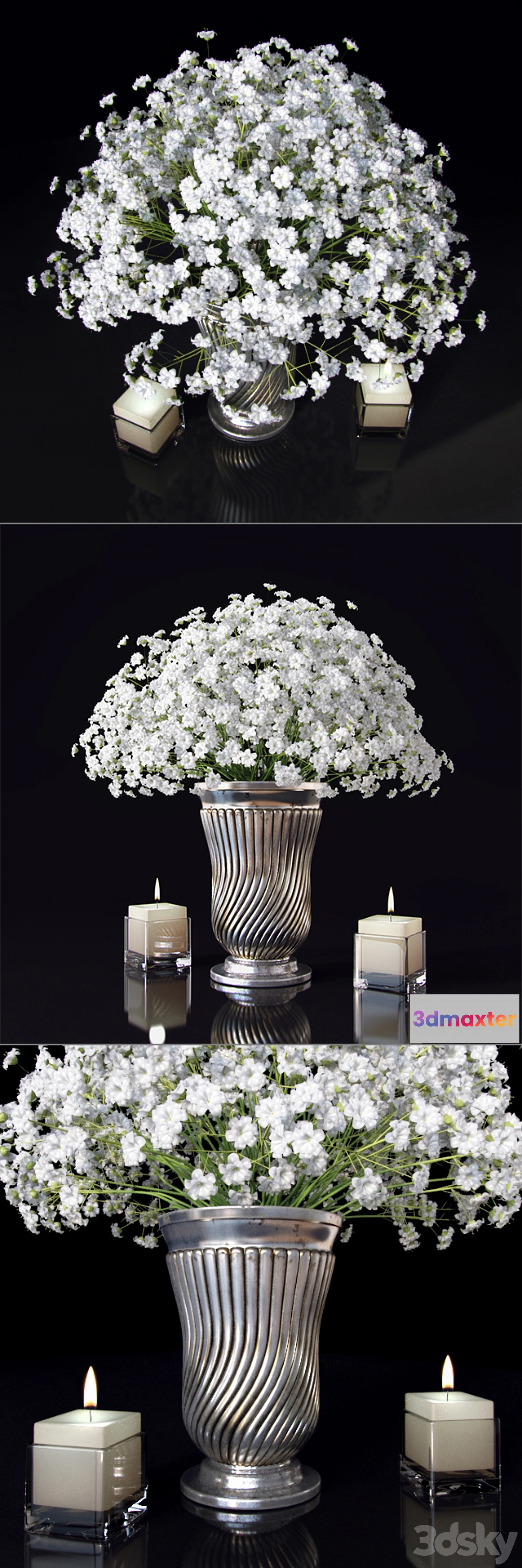 Bouquet of flowers in a classical metal vase. Formats in the archive: Max2011 OBJ Polys: 1374780 Verts: 1434043