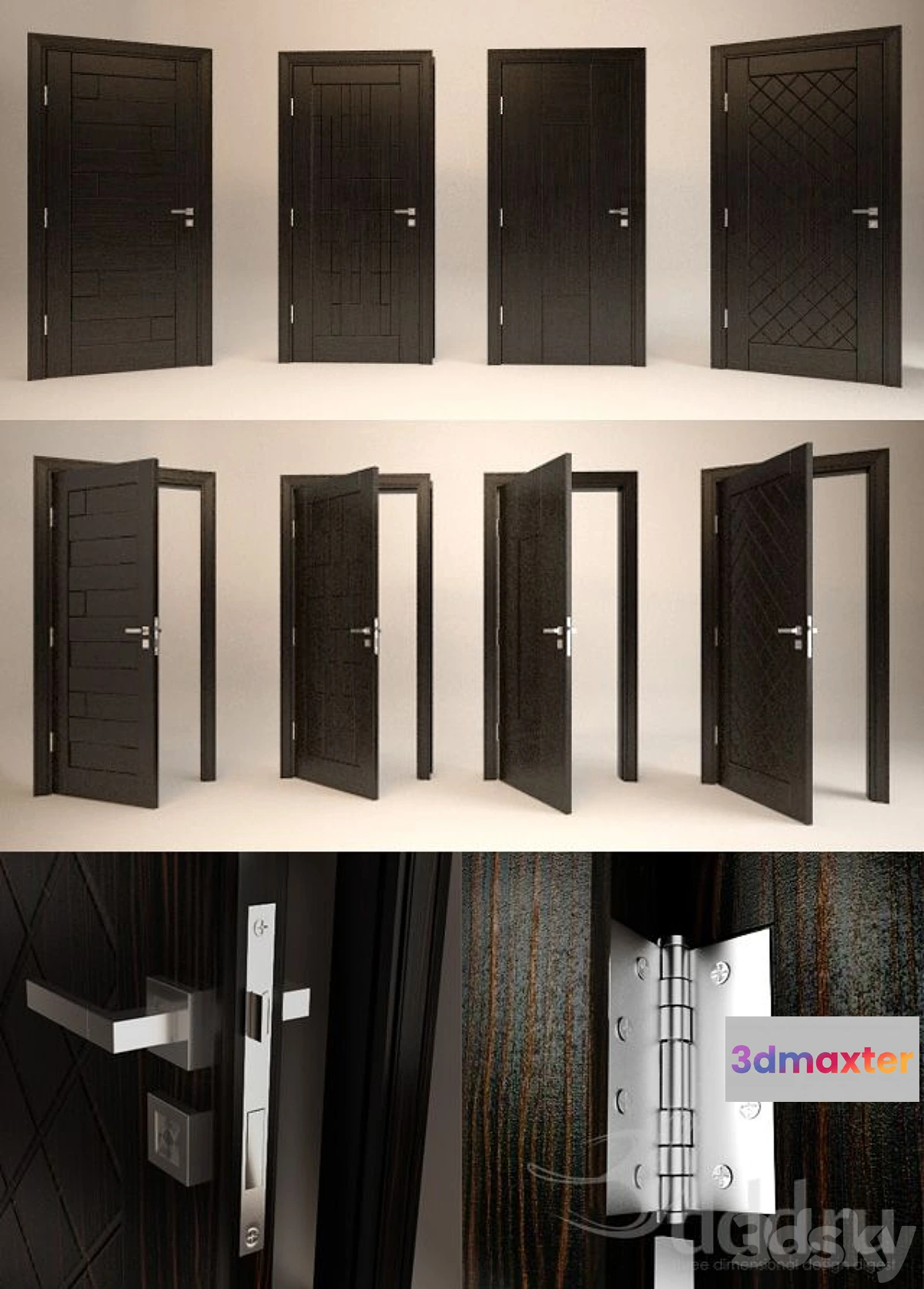 Four models of modern doors of my design fully detailed locks hinges screws yet light size model.