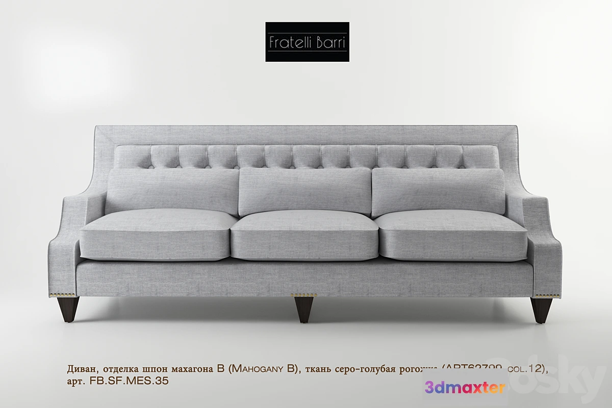 3 seater sofa in the style of Neoclassicism. Legs in mahogany veneer finish Mahogany B. upholstered gray-blue mat. The back is decorated with stitch Capito. Bottom base (where the legs) is decorated with carnations. Frame is made of solid wood. Decorative covers for pillows and cushions for seating removable. Article FB.SF.MES.35 Factory FRATELLI BARRI Collection MESTRE Size (LxWxH) 225 * 93 * 86cm – See more at: http://www.neopoliscasa.ru/items/divan-fb-sf-mes-35-24690 . html # sthash.mL40iN70.dpuf