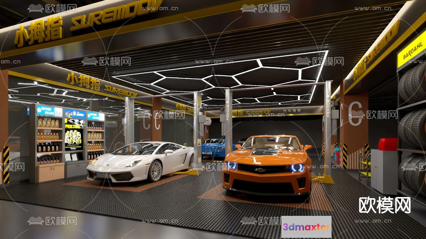 3D Models / 3D Scenes / Interior / Commercial Spaces / GARAGE – 3D Model For Interior Design – 1947 3D Max