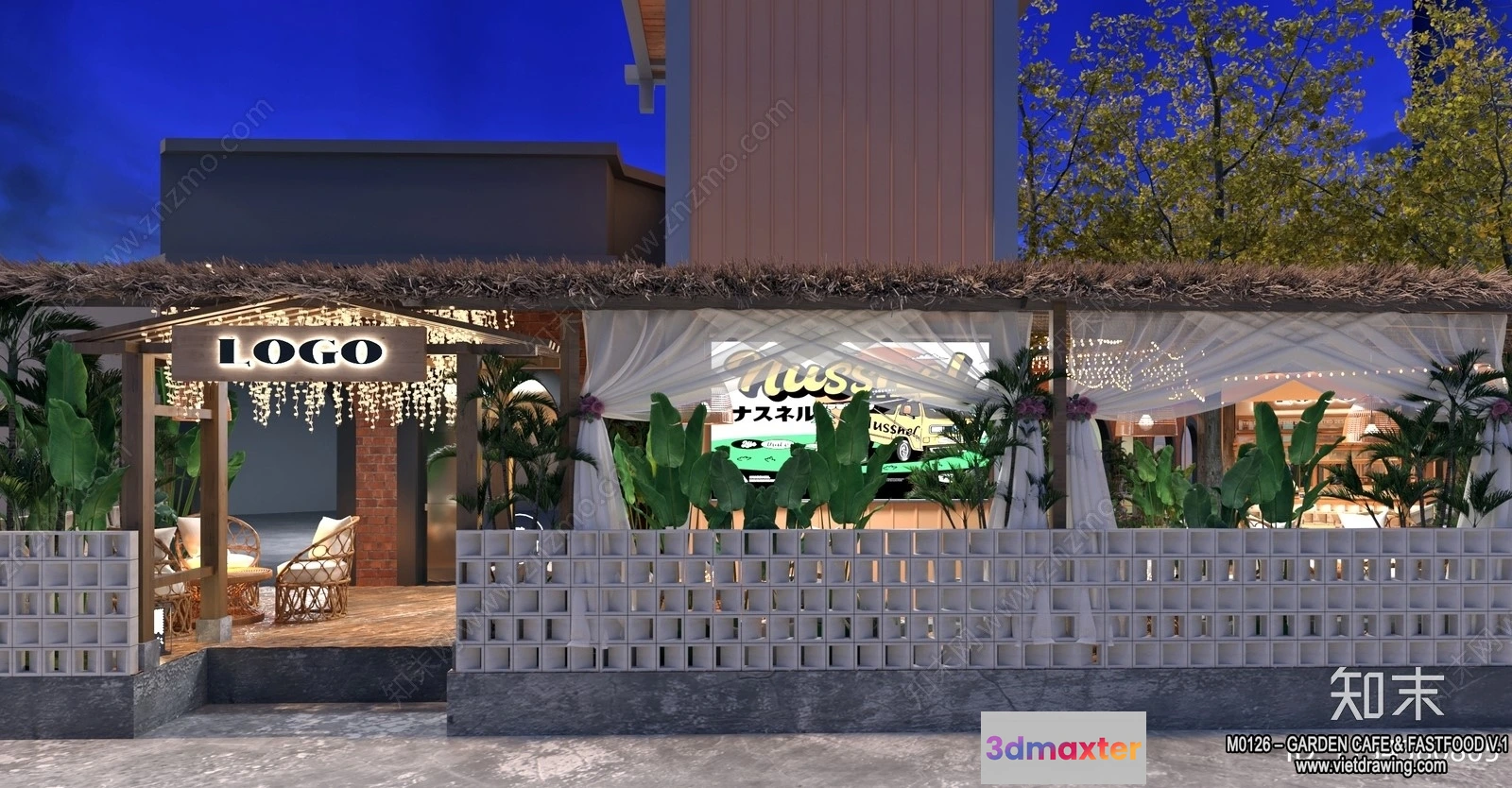 3D Models / 3D Scenes / Interior / Garden Coffee Shop – Fastfood – 3D Models – 009 3D Max