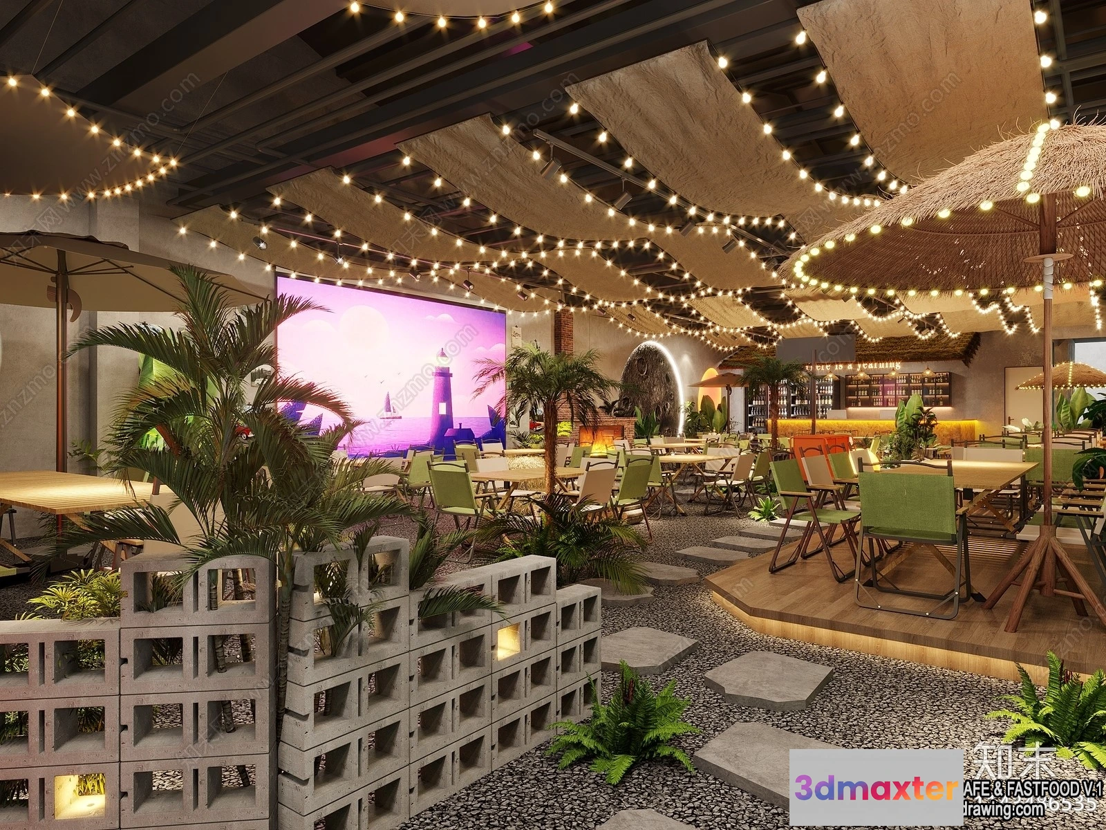 3D Models / 3D Scenes / Interior / Garden Coffee Shop – Fastfood – 3D Models – 012 3D Max
