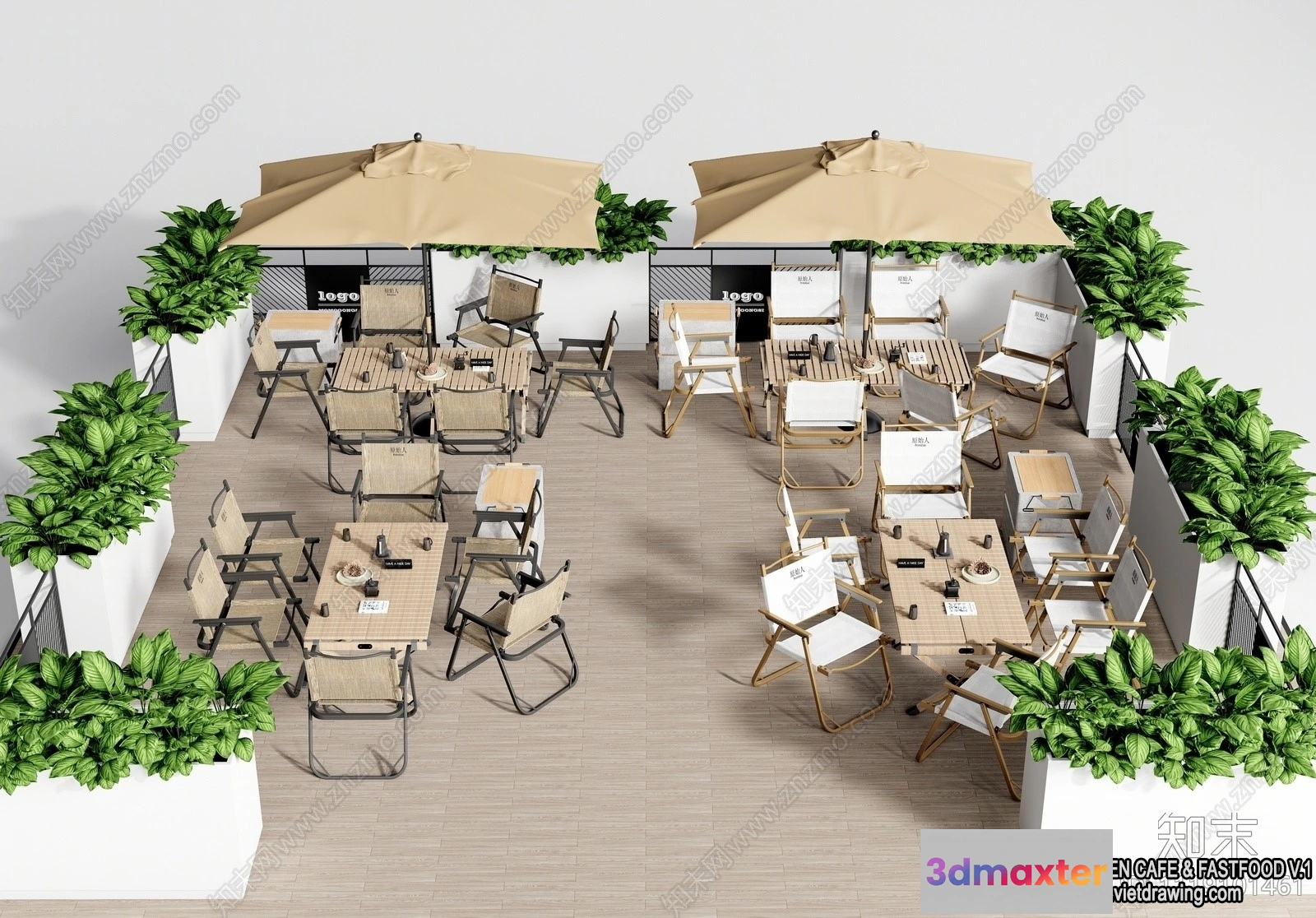3D Models / 3D Scenes / Interior / Garden Coffee Shop – Fastfood – 3D Models – 022 3D Max