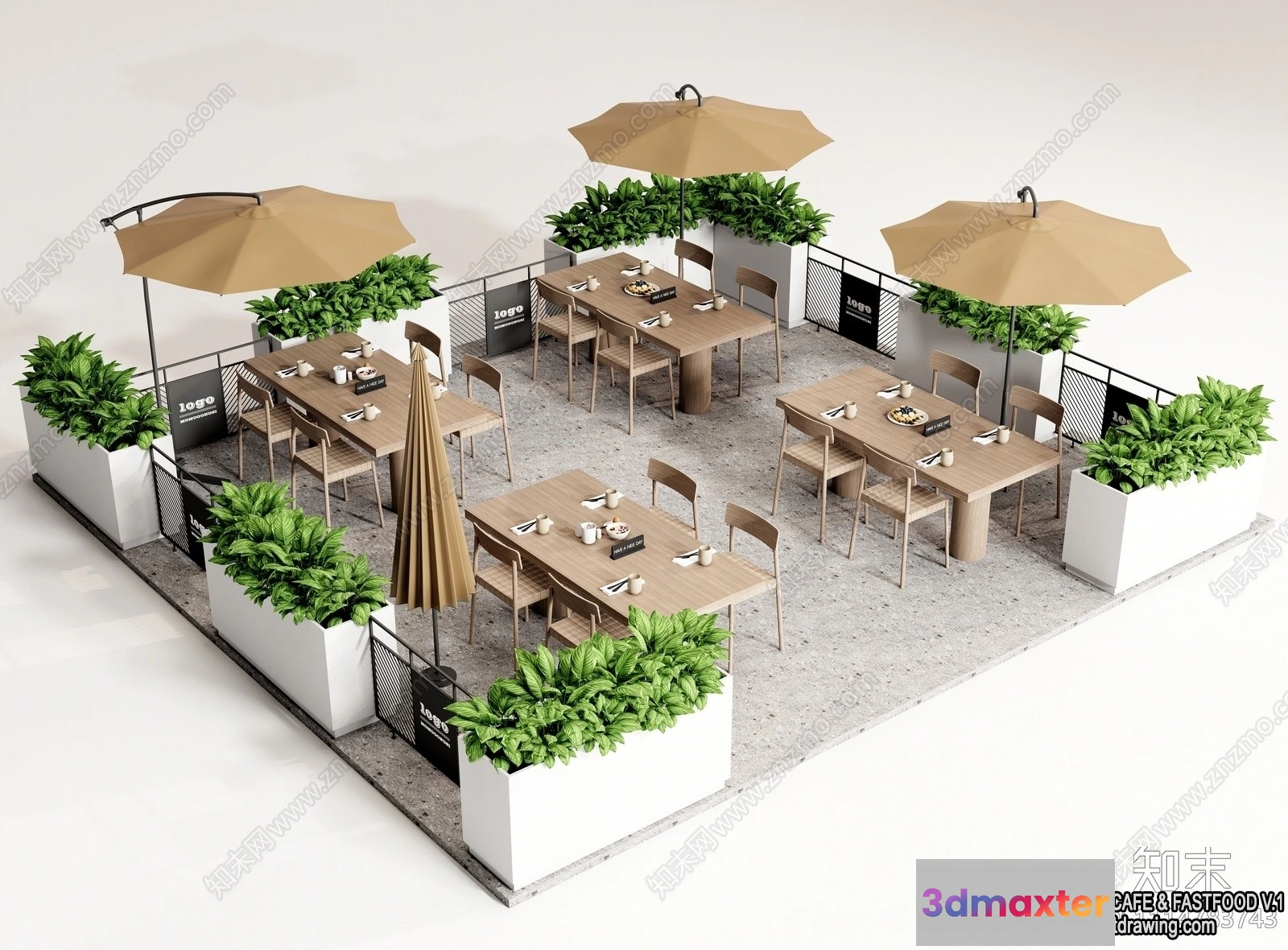 3D Models / 3D Scenes / Interior / Garden Coffee Shop – Fastfood – 3D Models – 040 3D Max
