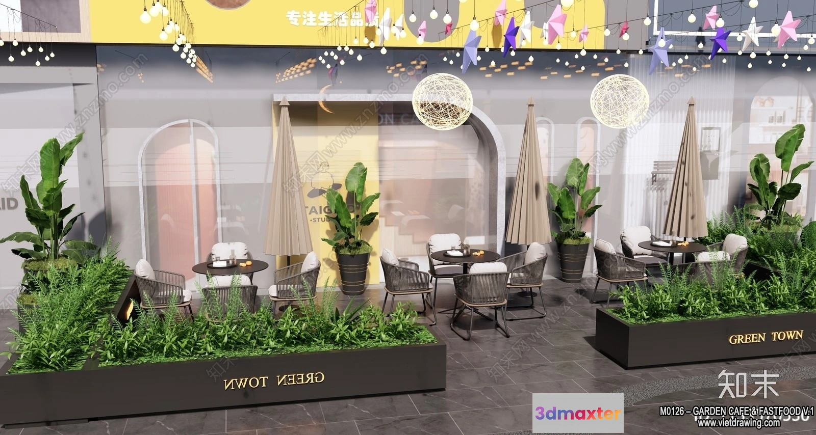 3D Models / 3D Scenes / Interior / Garden Coffee Shop – Fastfood – 3D Models – 042 3D Max